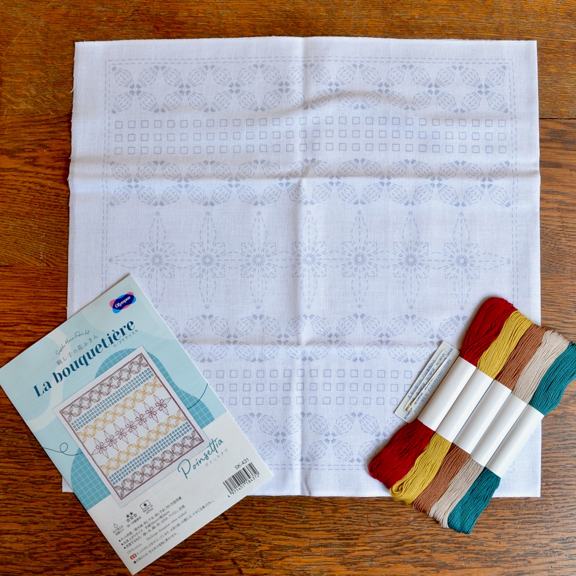 Kugurizashi Sashiko Kit, "Poinsettia"
