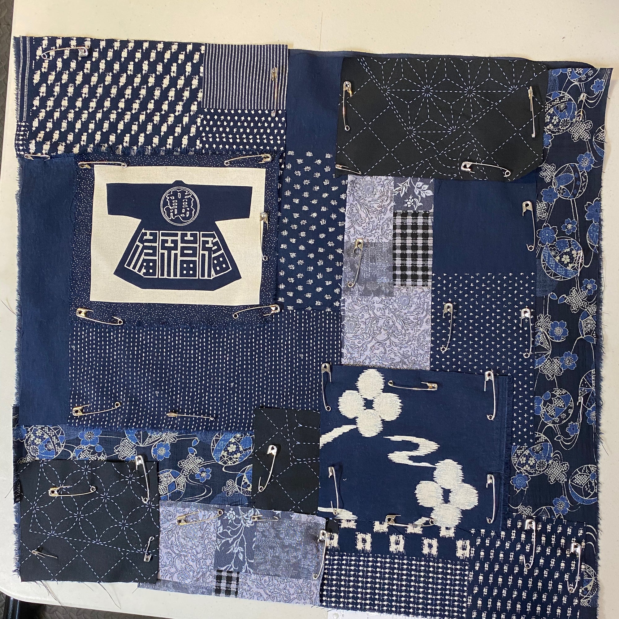Boro kit with everything you need to make a boro stitched cloth approx 20" X 20" . This kit is a good for beginning stitchers or for anyone wanting to make a boro cloth with traditional Japanese wagara print cotton fabrics.