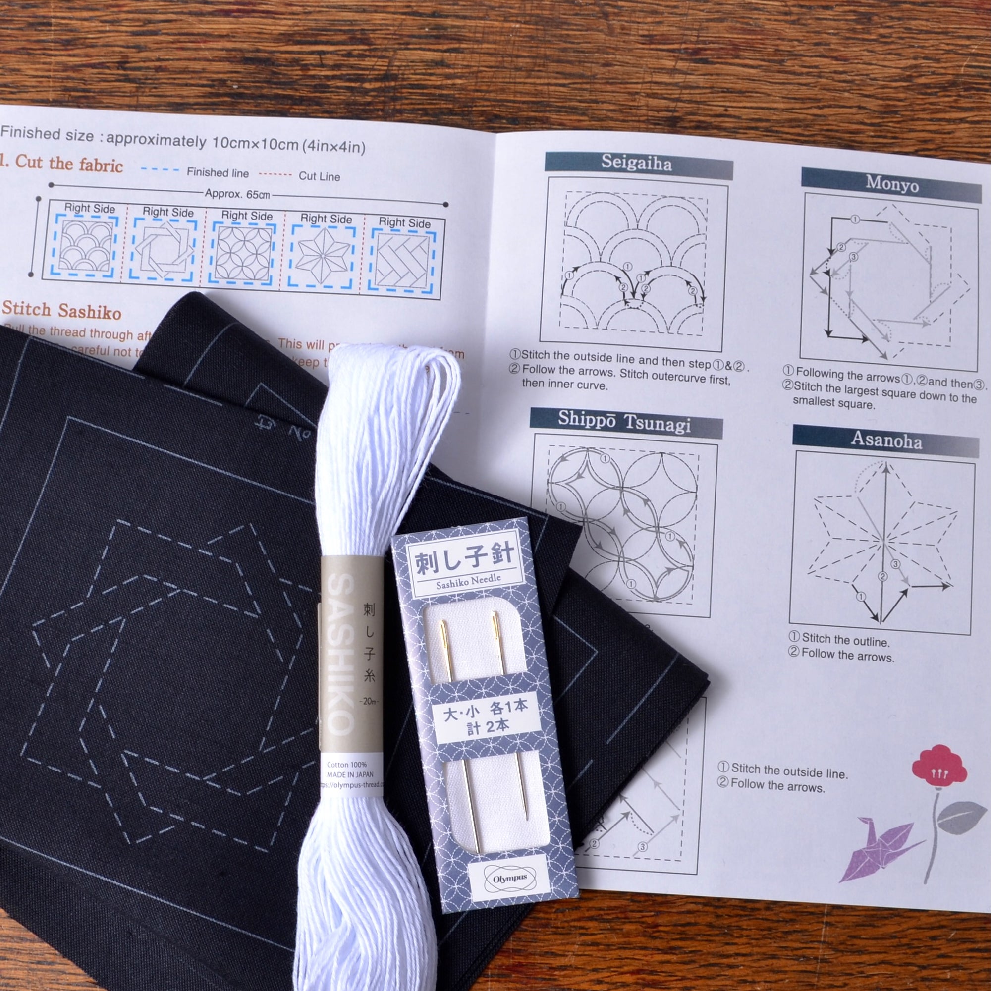 Sashiko Grab & Go Kit: Five Sumi Black Coasters