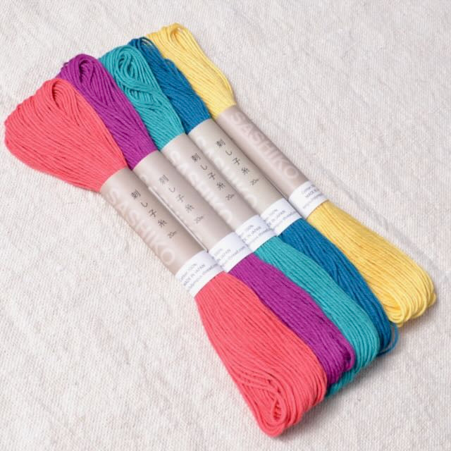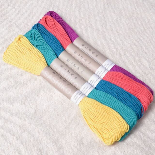 This is a collection of 5 skeins of Olympus Sashiko thread in the bright and pretty jewel tones.
