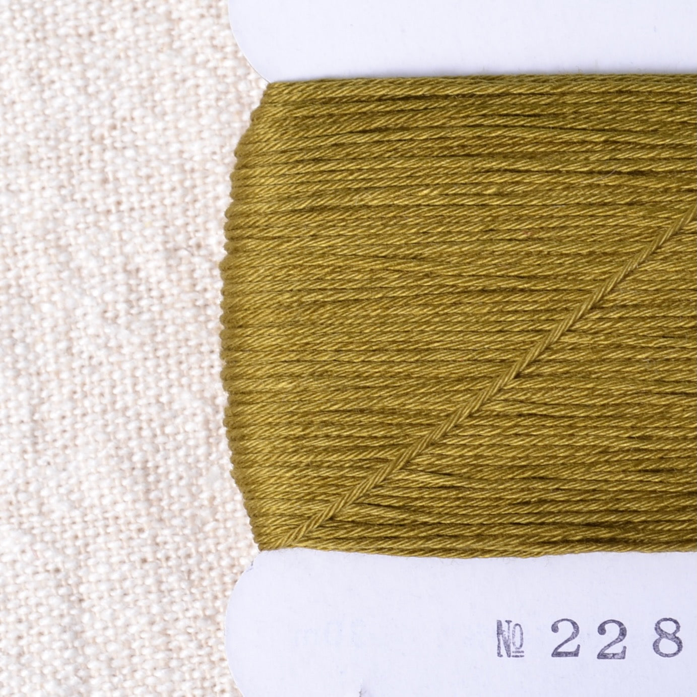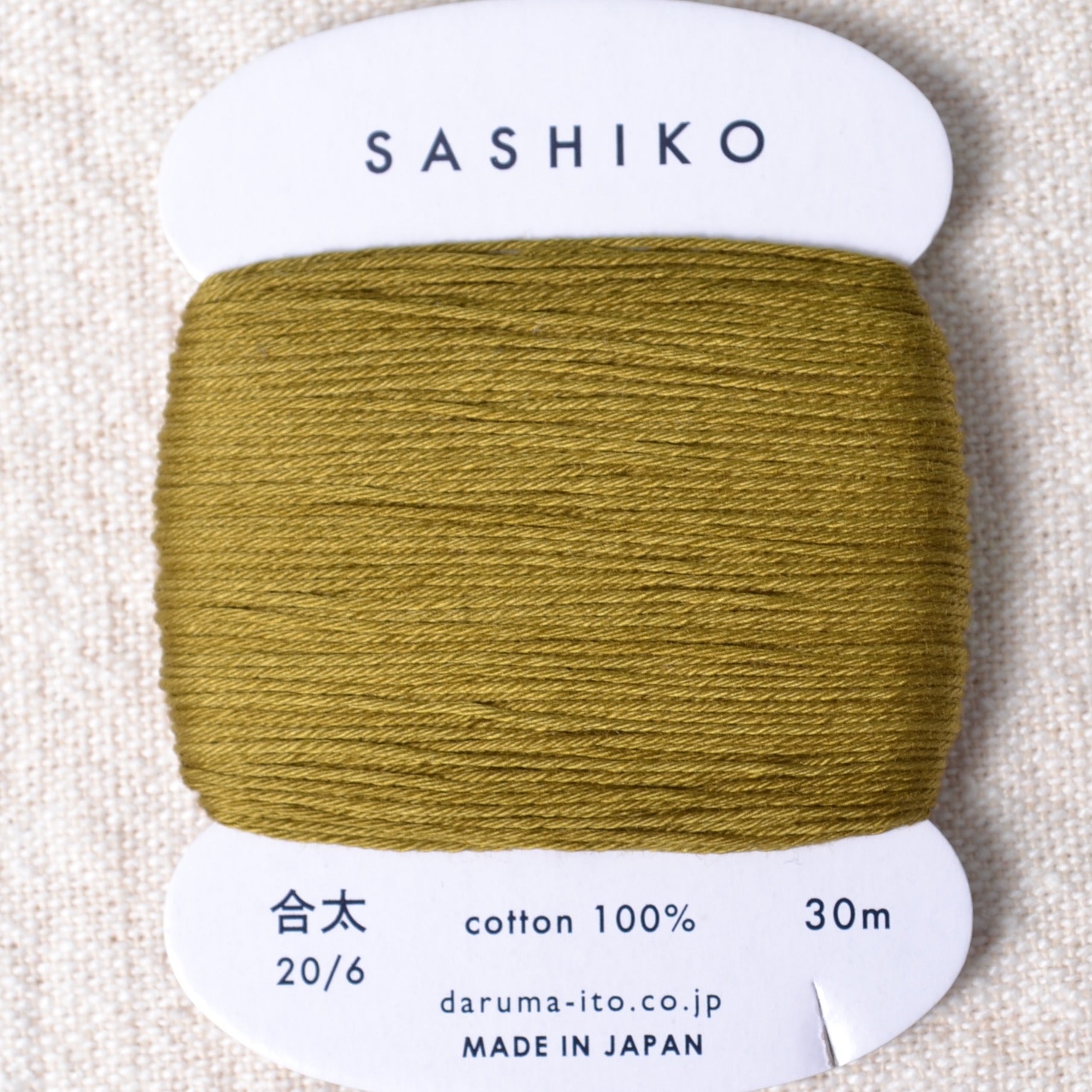 • Thread size 20/6. (Very close to #8 size perle cotton, close to the thickness of Olympus 100 meter skeins of sashiko thread which are slightly thinner than their 20 meter sashiko skeins)