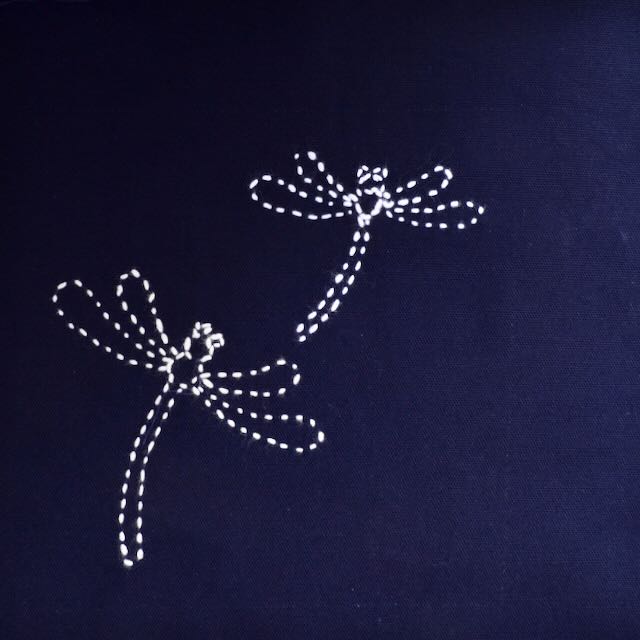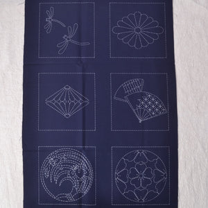 Included in this kit is 6 blocks on navy sashiko fabric, 20 meters of white sashiko thread and a sashiko needle