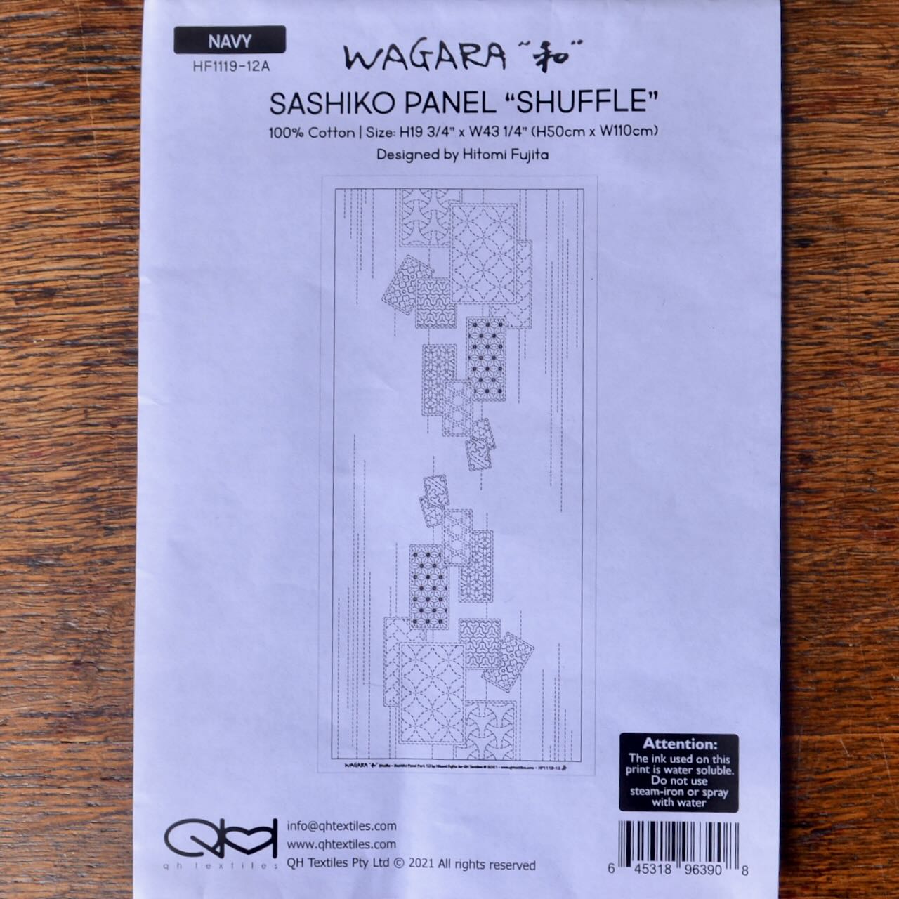 Sashiko stitch lines are printed in wash away ink on this 52cm by 110 cm colorfast navy blue mid weight 100% cotton fabric panel. Simply thread your sashiko needle with some sashiko thread and stitch over the printed markings. When you are done, wash the panel and the print will wash completely away. Press face down with a steam iron.