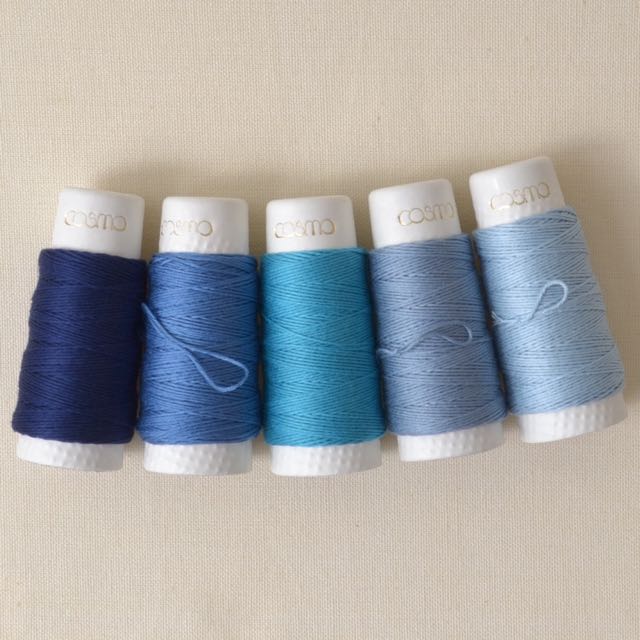 Hidamari sashiko thread. Made by Cosmo Lecien, you can trust the quality of this thread for sashiko stitching, visible mending, and boro. Also try it for embroidery and other hand stitching projects, and for big stitch quilting as well. It has the qualities we all want. It won't shrink, bleed or fade with washing, and it is easy to handle.