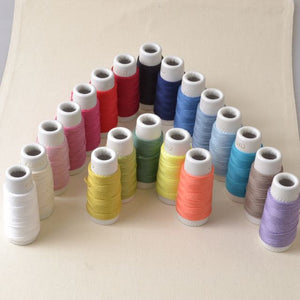 Hidamari Sashiko thread, 100% cotton, on 30 meter spools. If you would like a thinner sashiko stitching thread for a lighter looking stitched line, this is a good choice. It is a firmer thread, so it doesn't have the slight fuzz of the softer 20 meter Olympus sashiko thread skeins, and it it truly a matter of preference whether this is a better feature :-)