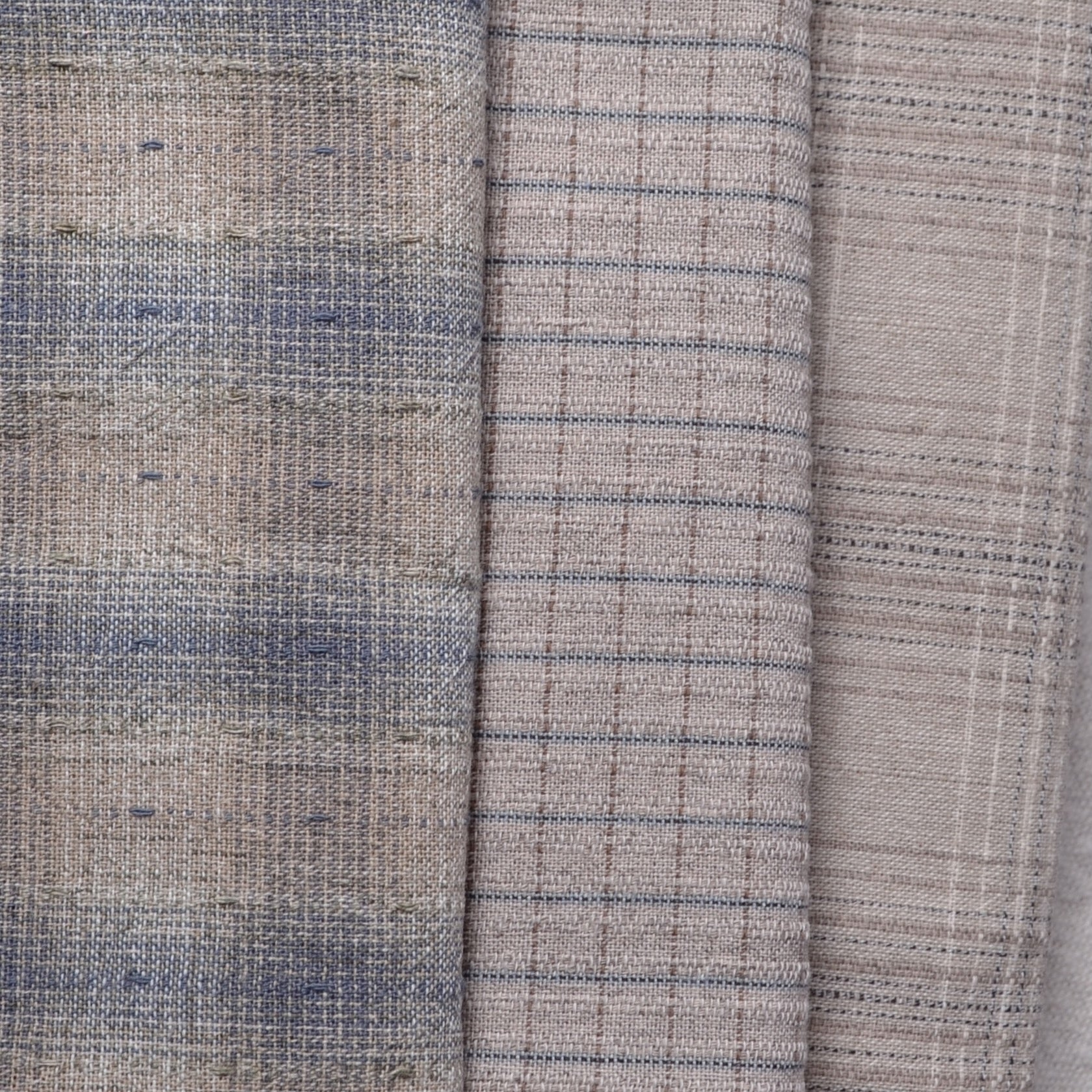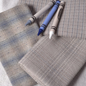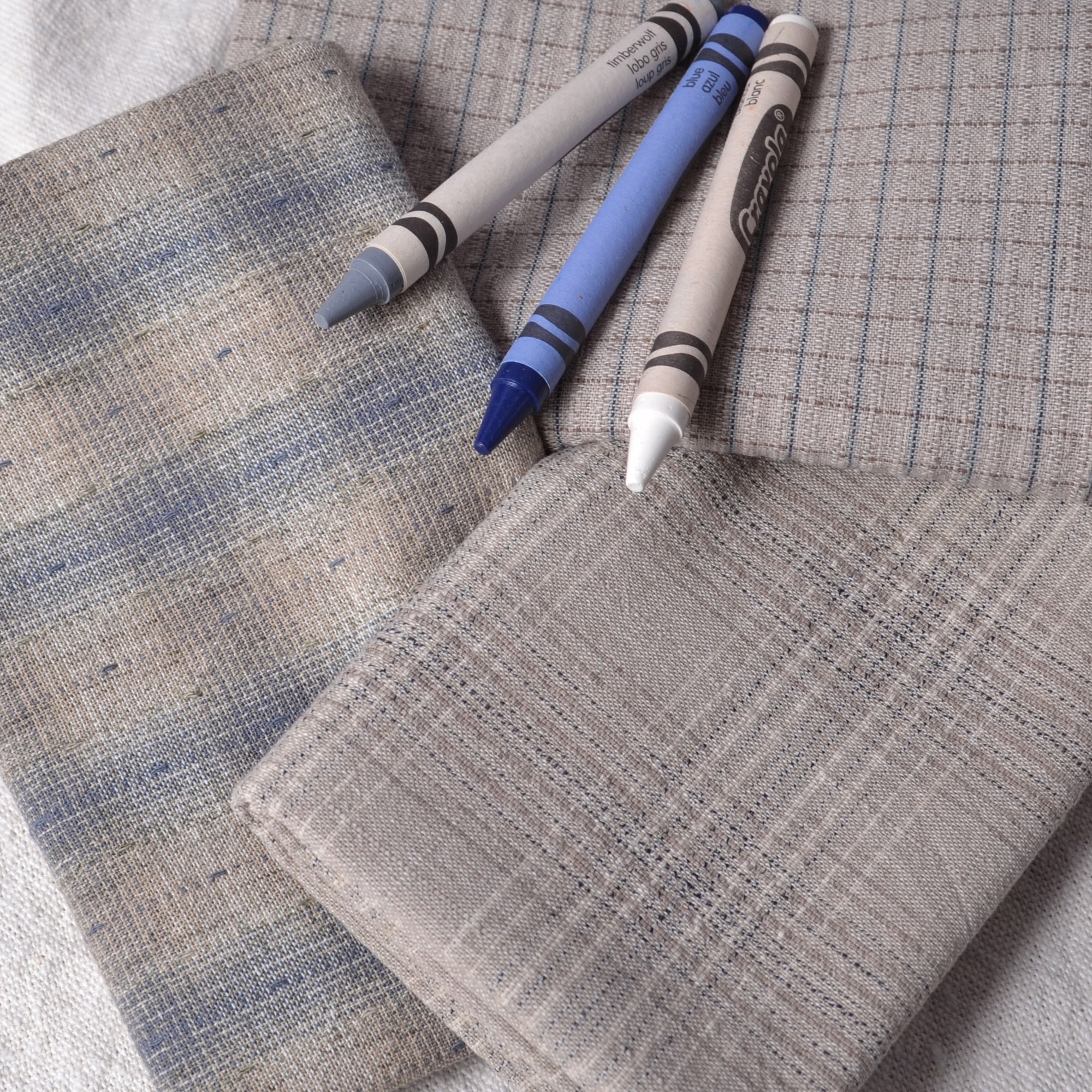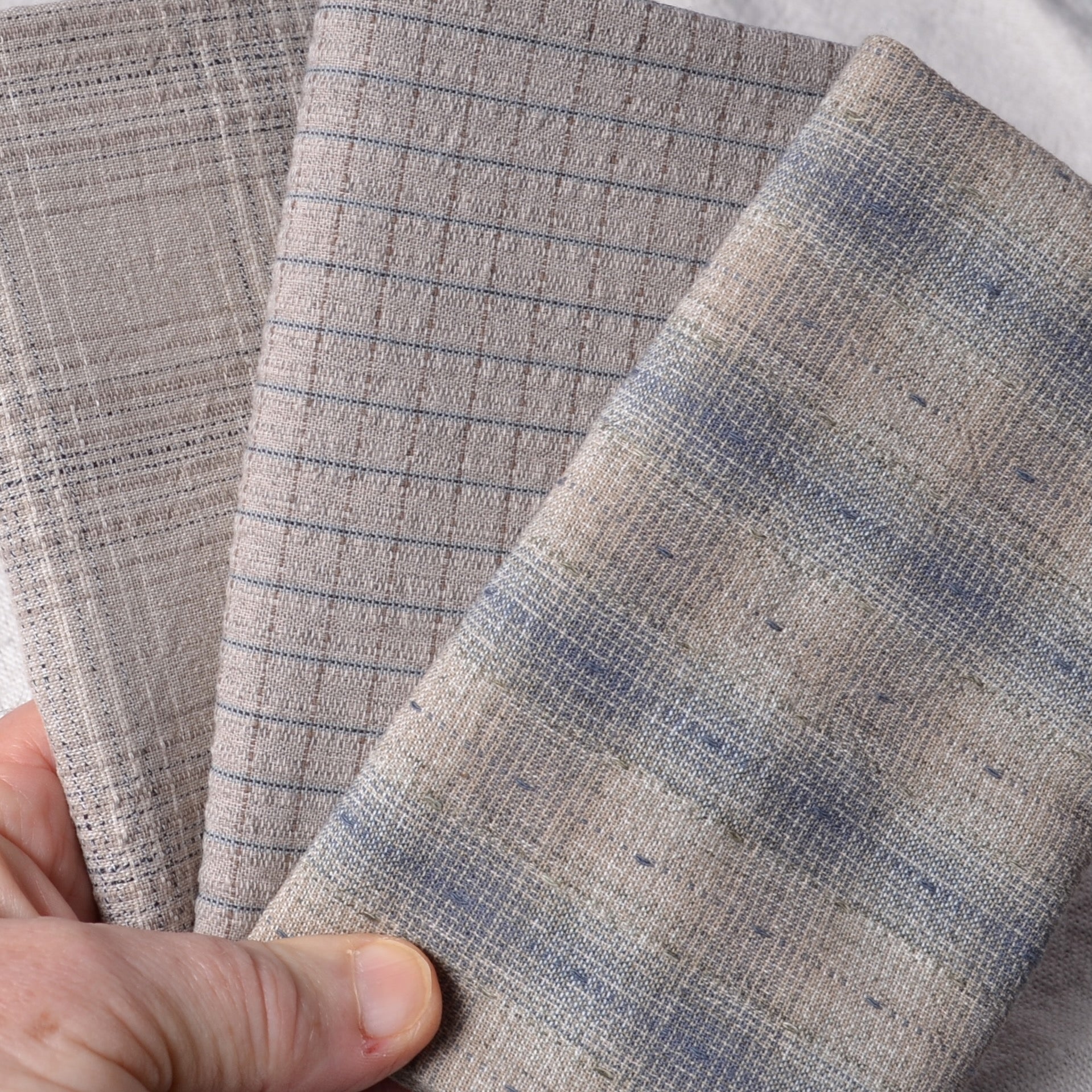 Dyed Yarn Cotton Fabric Bundle of 3, Soft Taupe Gray/Blues