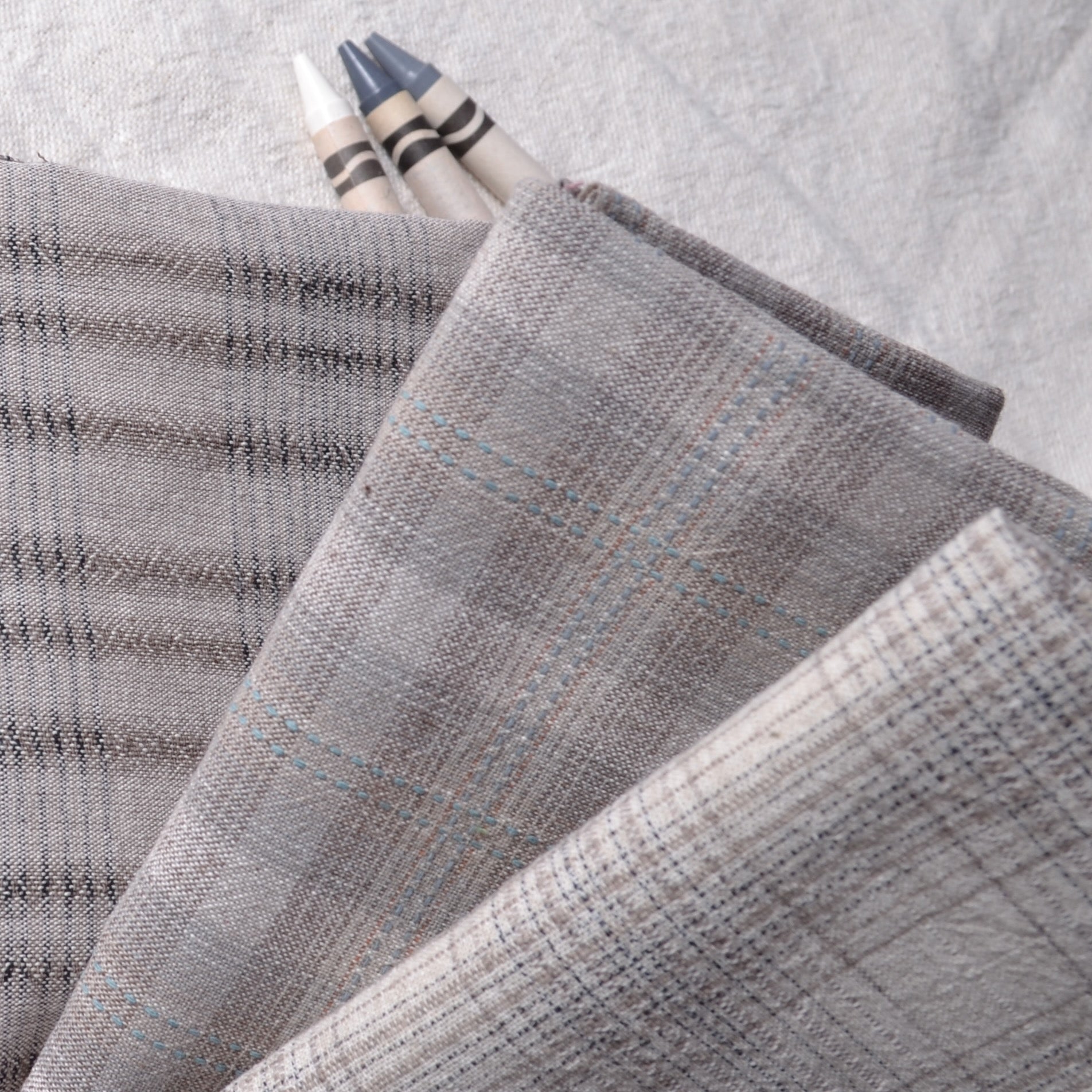 Dyed Yarn Cotton Fabric Bundle of 3, Soft Taupe Grays