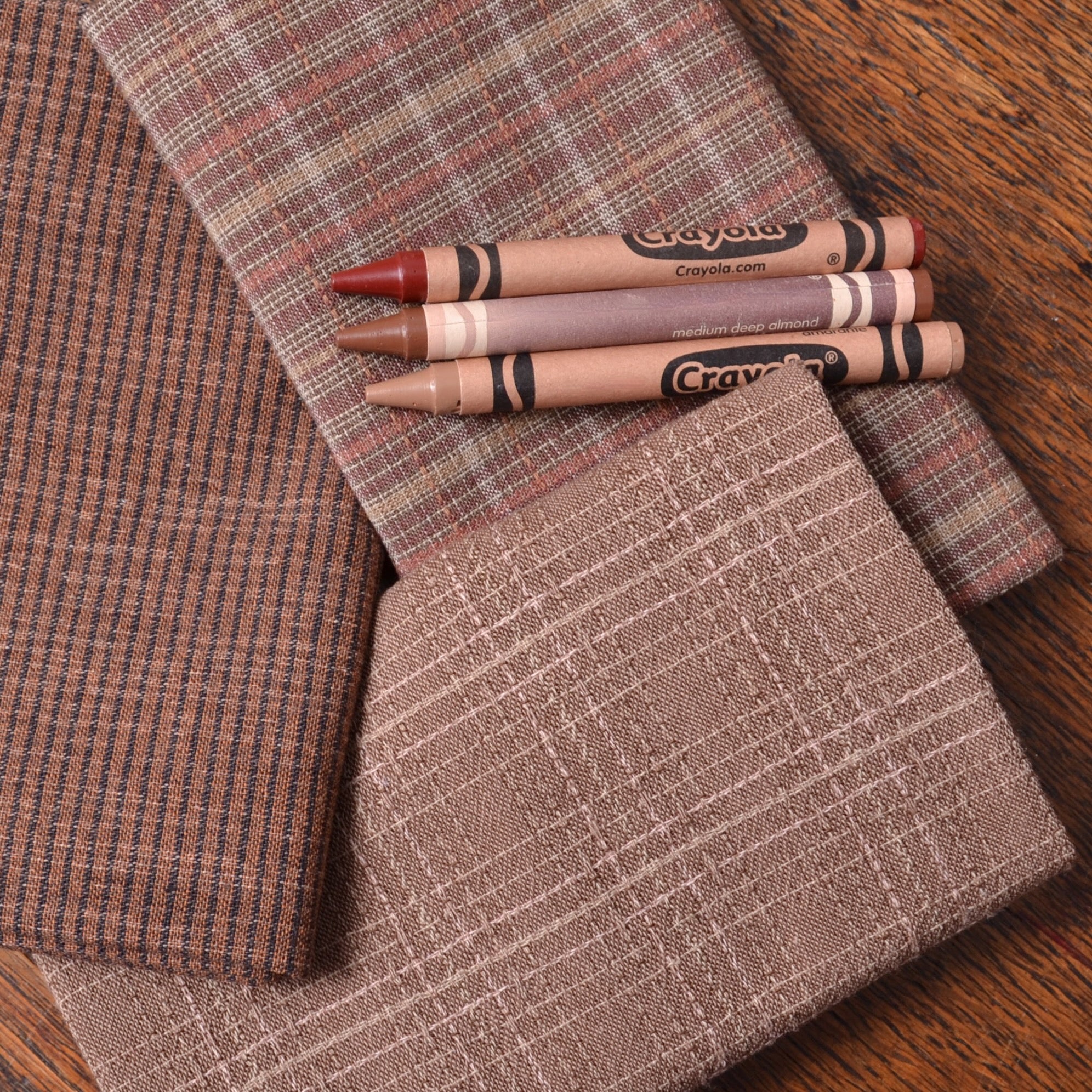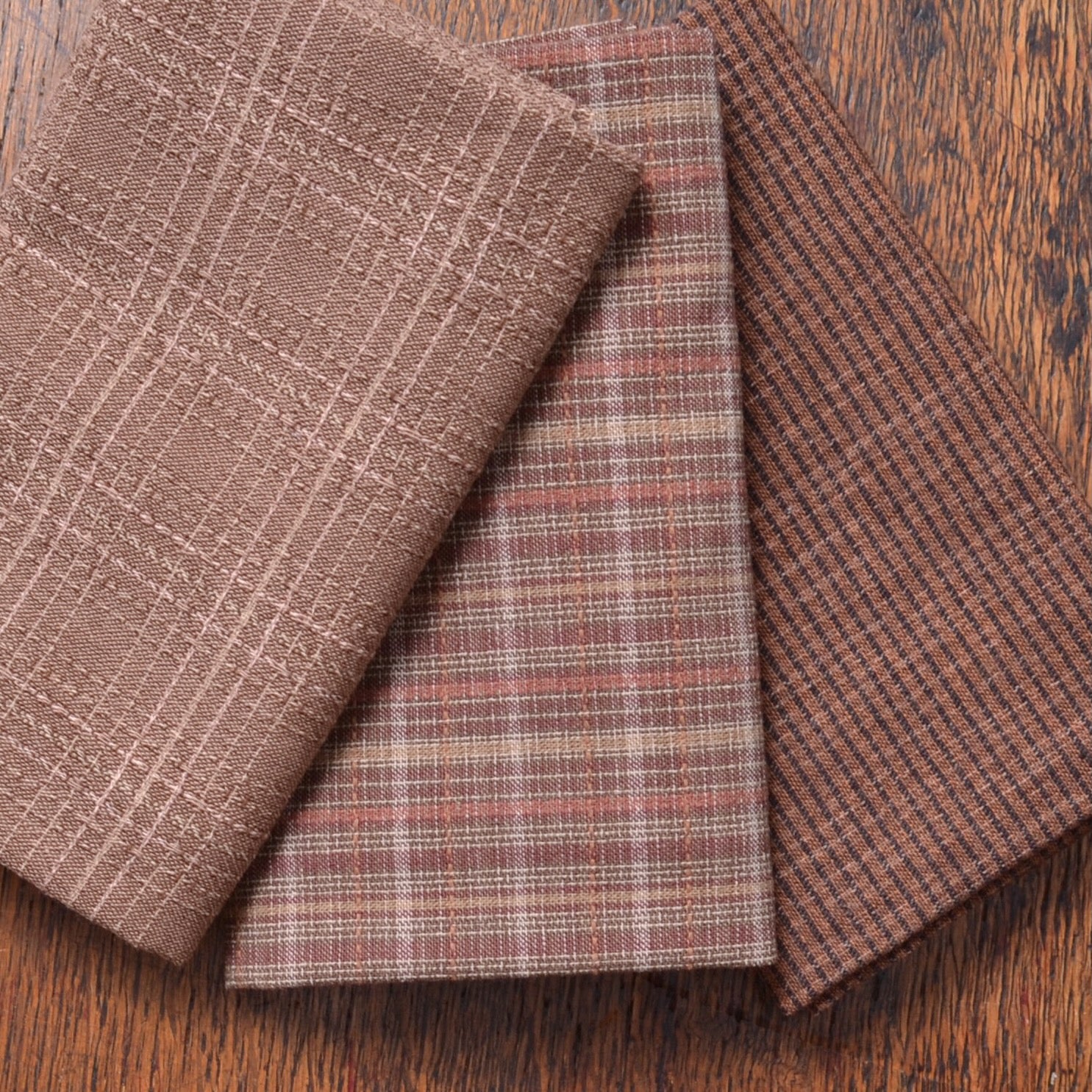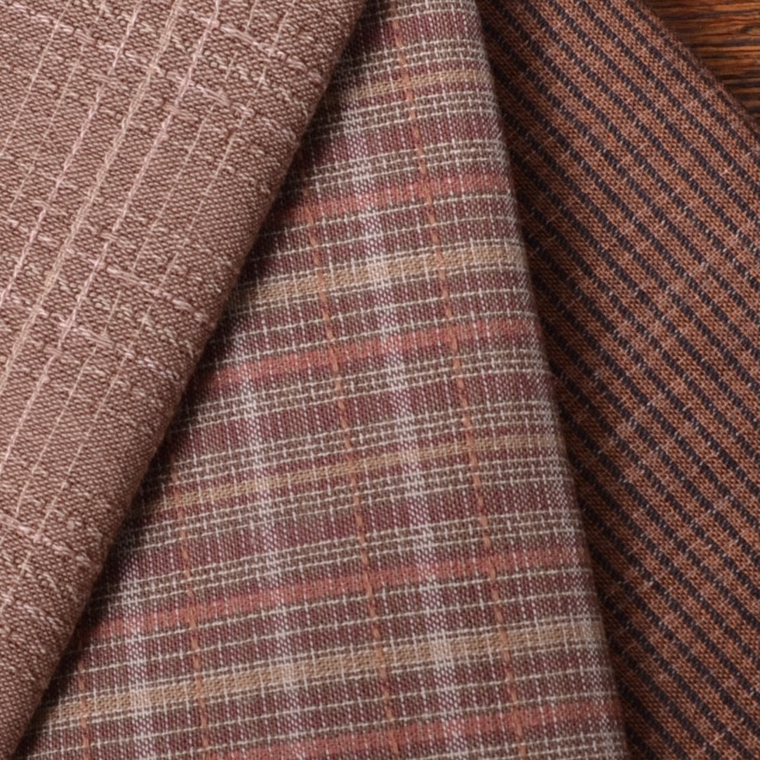 Dyed Yarn Cotton Fabric Bundle of 3, Warm Coppery Mid-brown