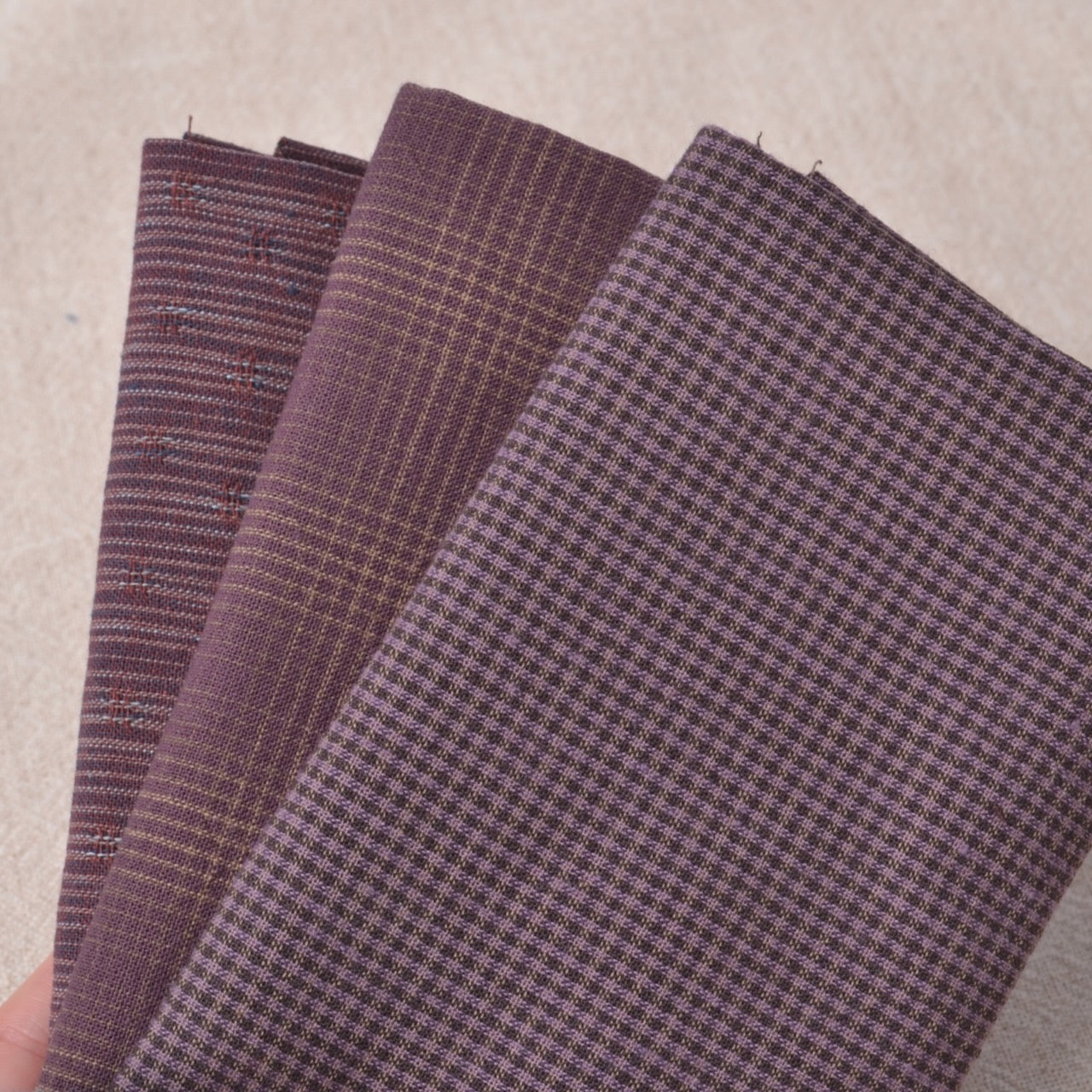 Dyed Yarn Cotton Fabric Bundle of 3, Aubergine