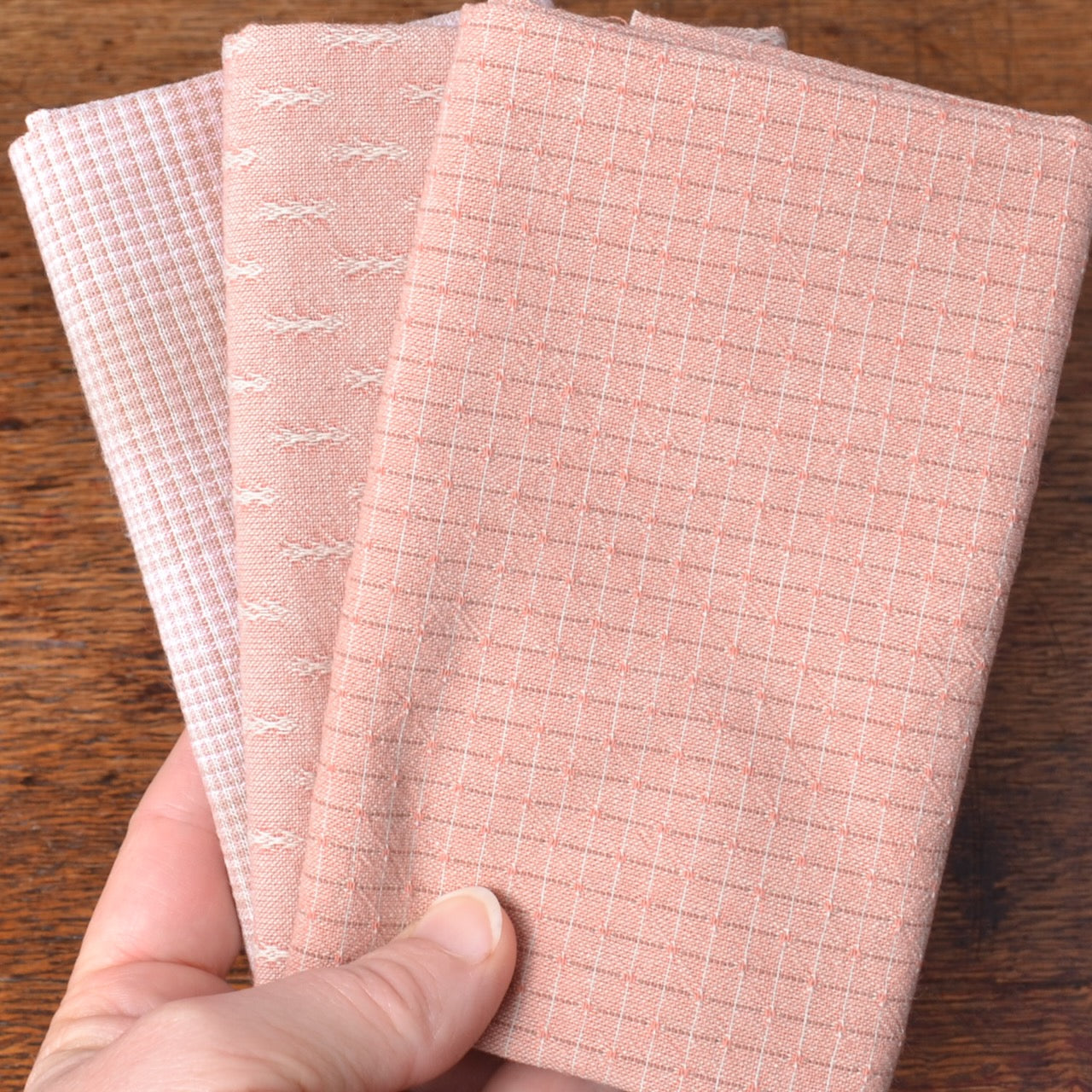 Dyed Yarn Cotton Fabric Bundle of 3, Coral Blush
