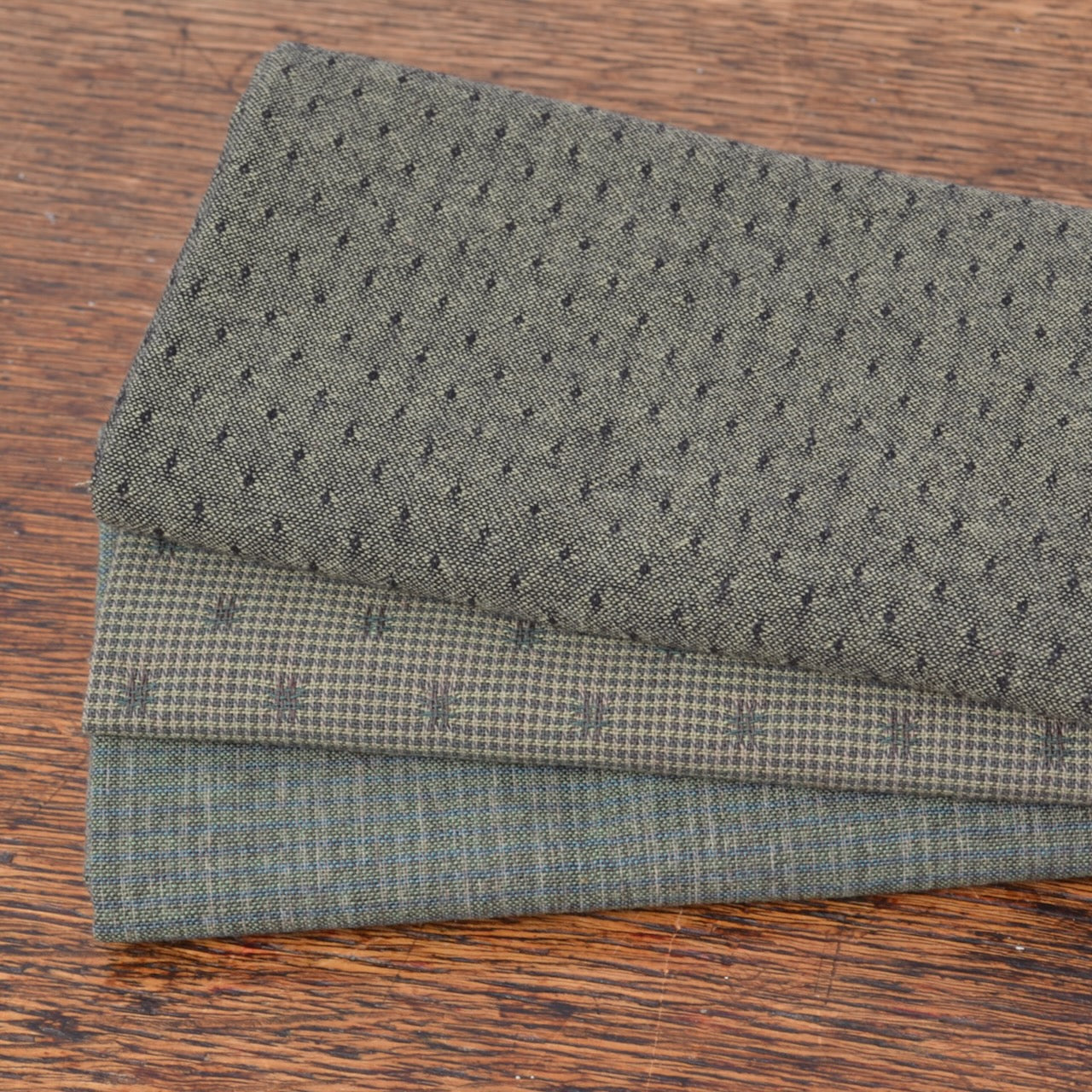 Dyed Yarn Cotton Fabric Bundle of 3, Hunter Greens