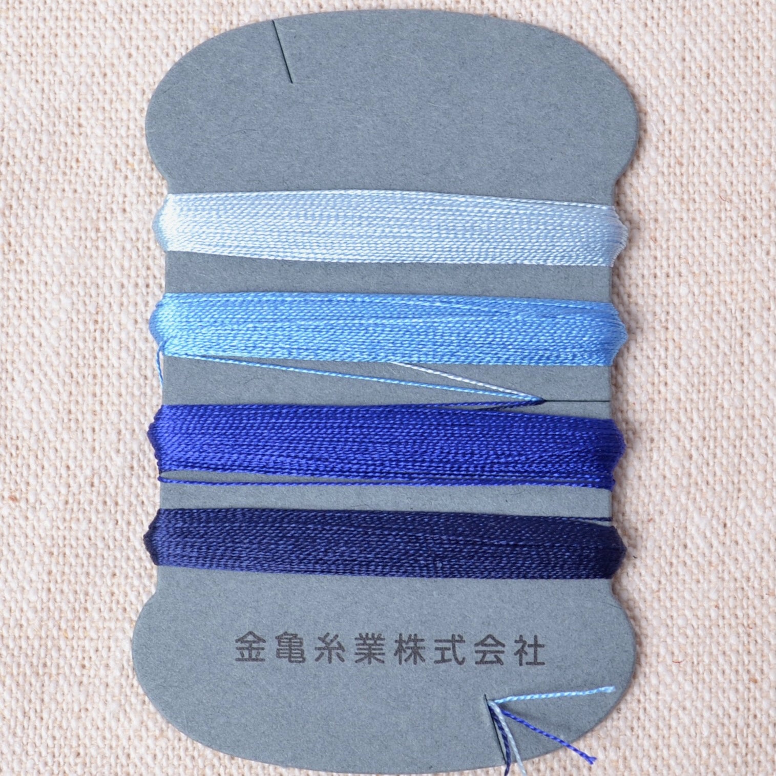 40 meters cards of 4 coordinated 100% Silk hand sewing threads from Kinkame Thread Company of Japan.