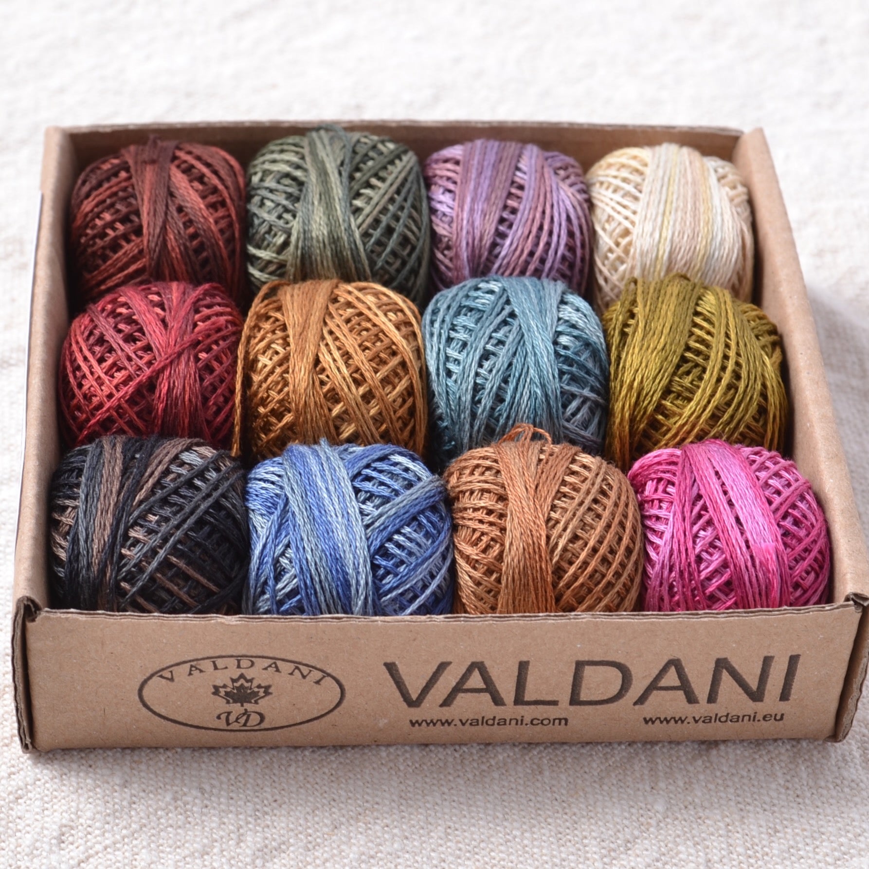"Scent of Flowers" is a Valdani 3 strand embroidery thread collection containing 12 gently wrapped 30 yard balls (27.4 meters). It is ready to use without having to split the strands first, and easy to mange without tangling. This thread is suitable for embroidery, punch needle, and other hand stitching projects.