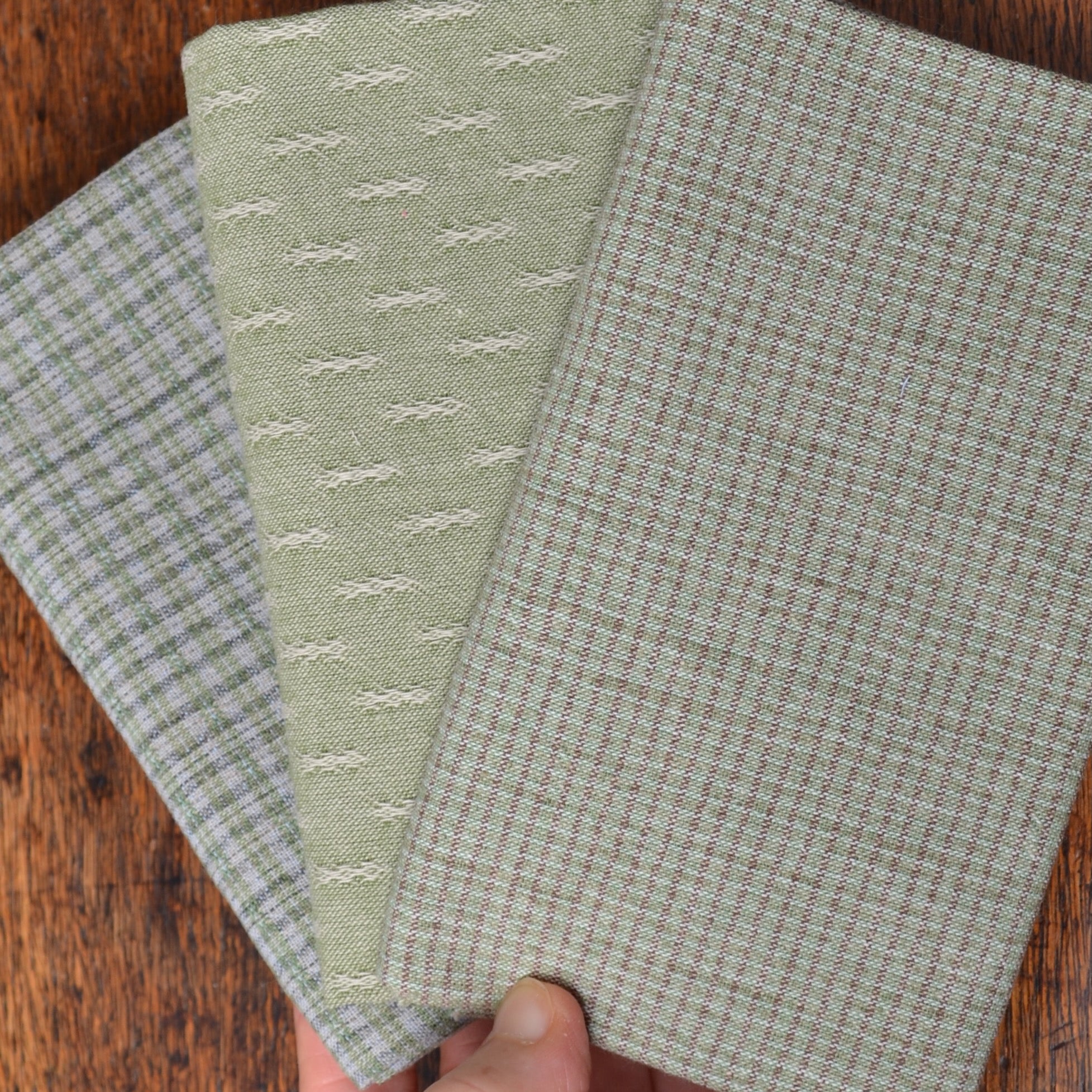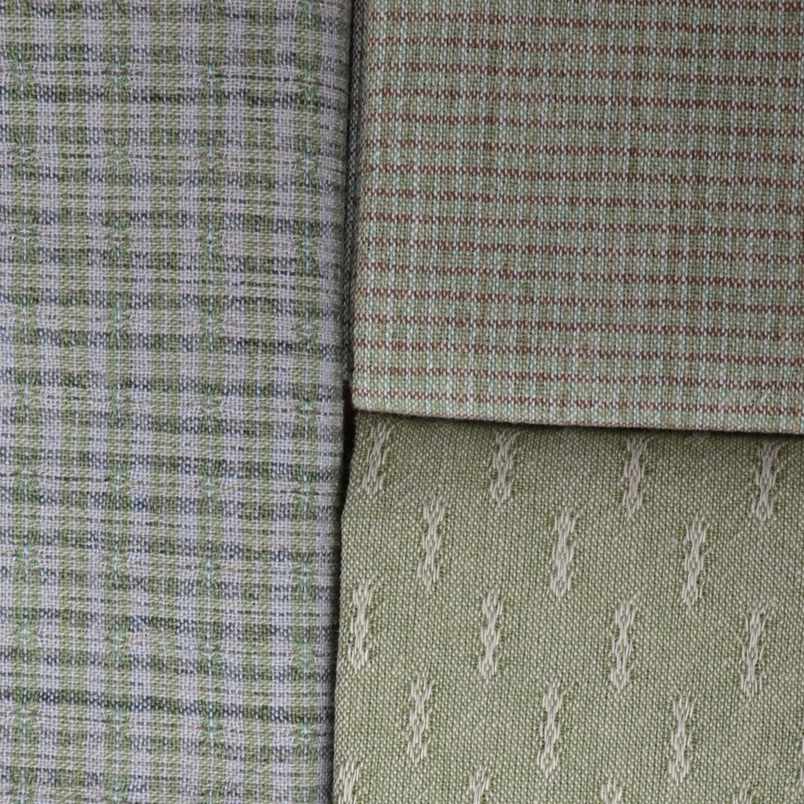 Dyed Yarn Cotton Fabric Bundle of 3, Soft Bright Greens