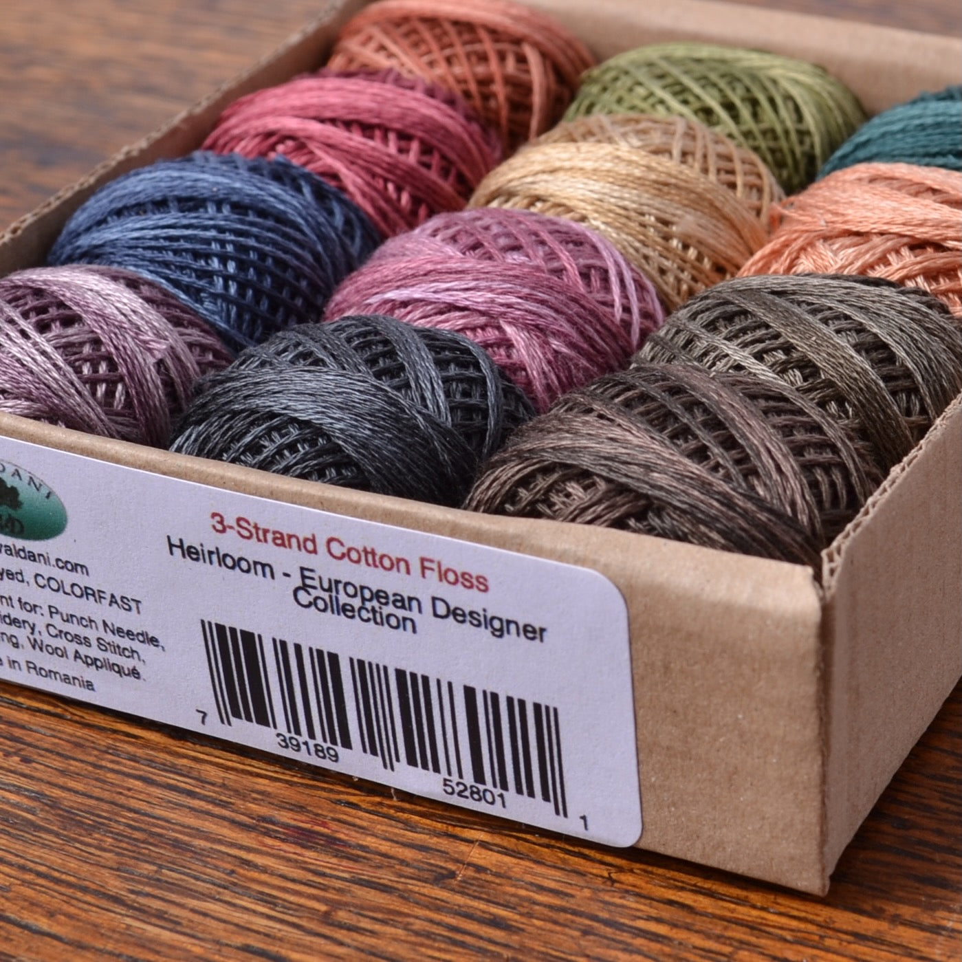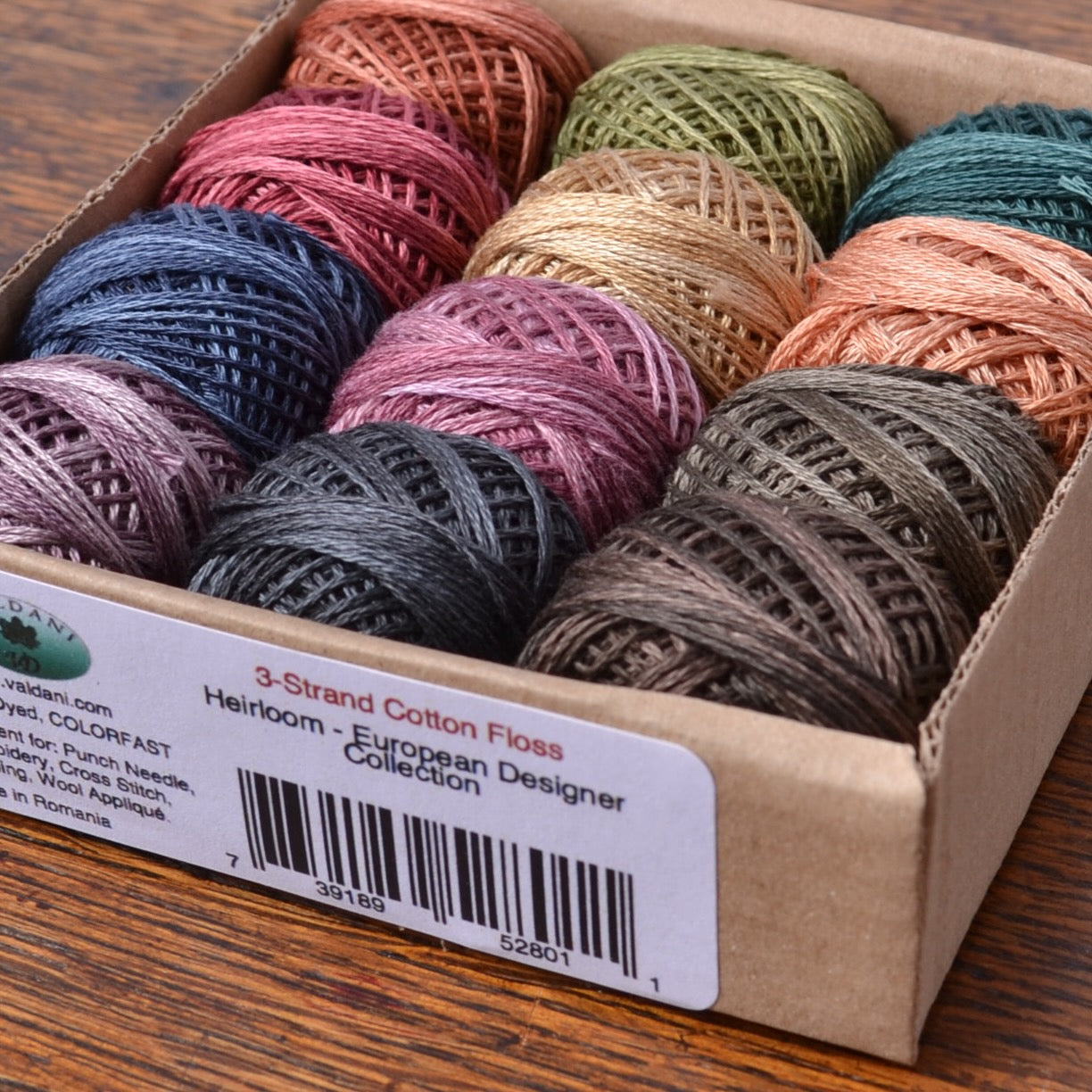 "Heirloom" is a Valdani 3 strand embroidery thread collection containing 12 gently wrapped 30 yard balls (27.4 meters). It is ready to use without having to split the strands first, and easy to mange without tangling. This thread is suitable for embroidery, punch needle, and other hand stitching projects.