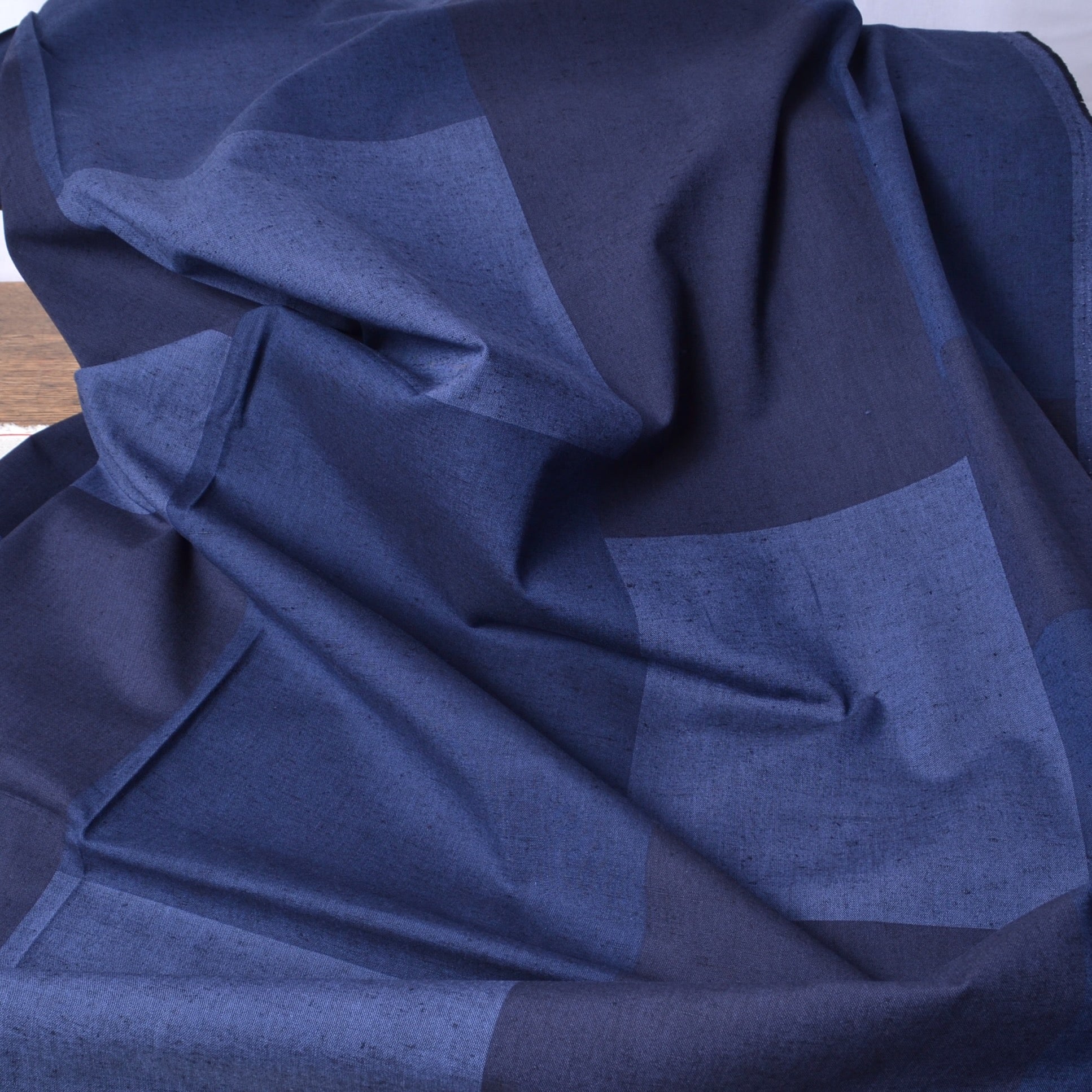 Tsumugi Cotton Sewing Fabric, Colour Block Marine Blues