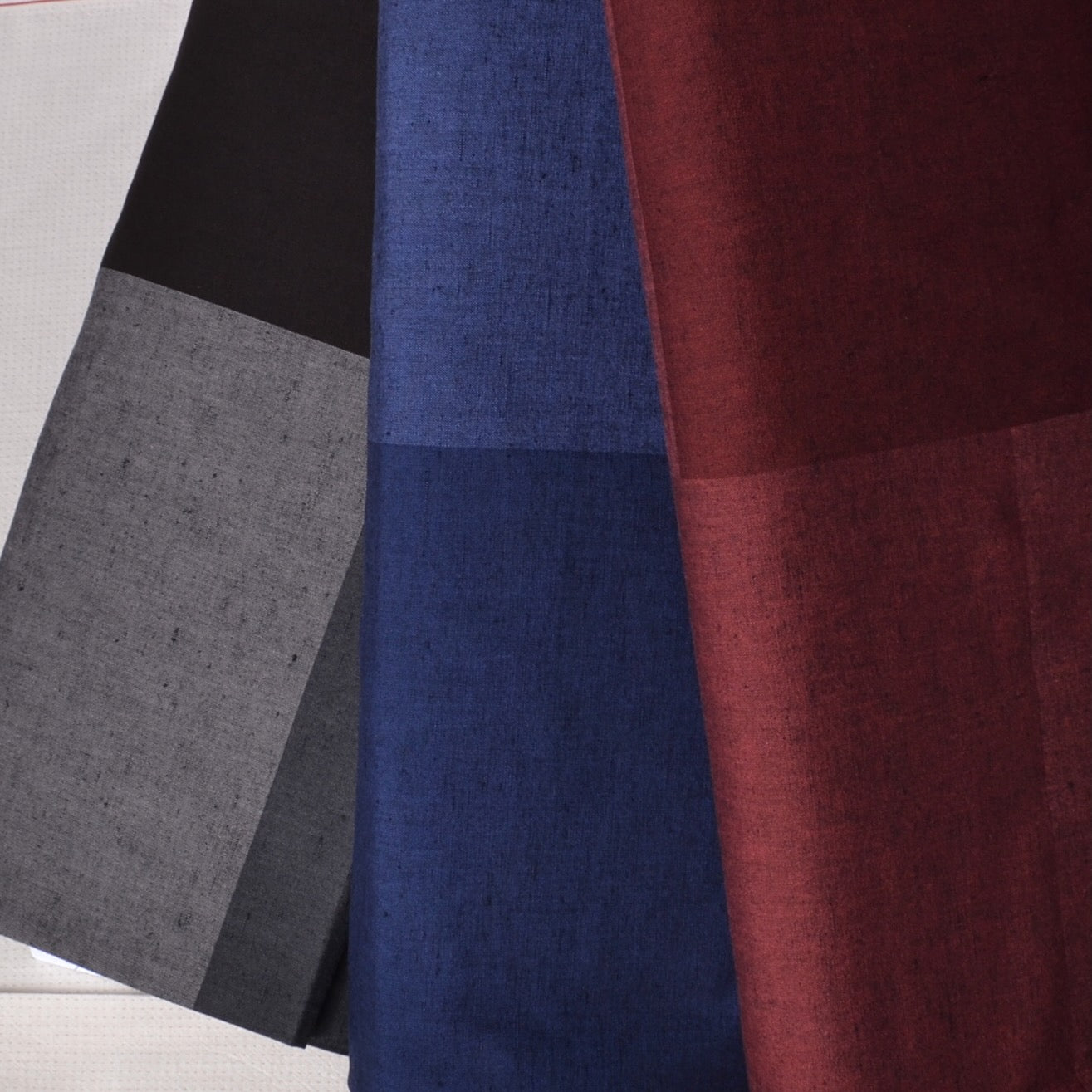 This is a lightweight colour block tsumugi style cotton fabric is suitable for quilting, clothing and home decor sewing. This fabric is the same weight and colour as the Marine Blue sashiko tsumugi panel.