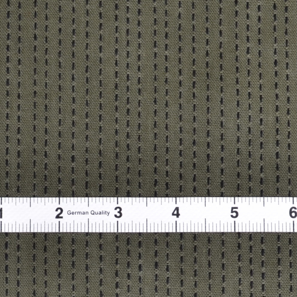 Cotton Sewing Fabric, Dark Olive Green Sashiko Stitched Style