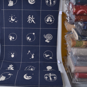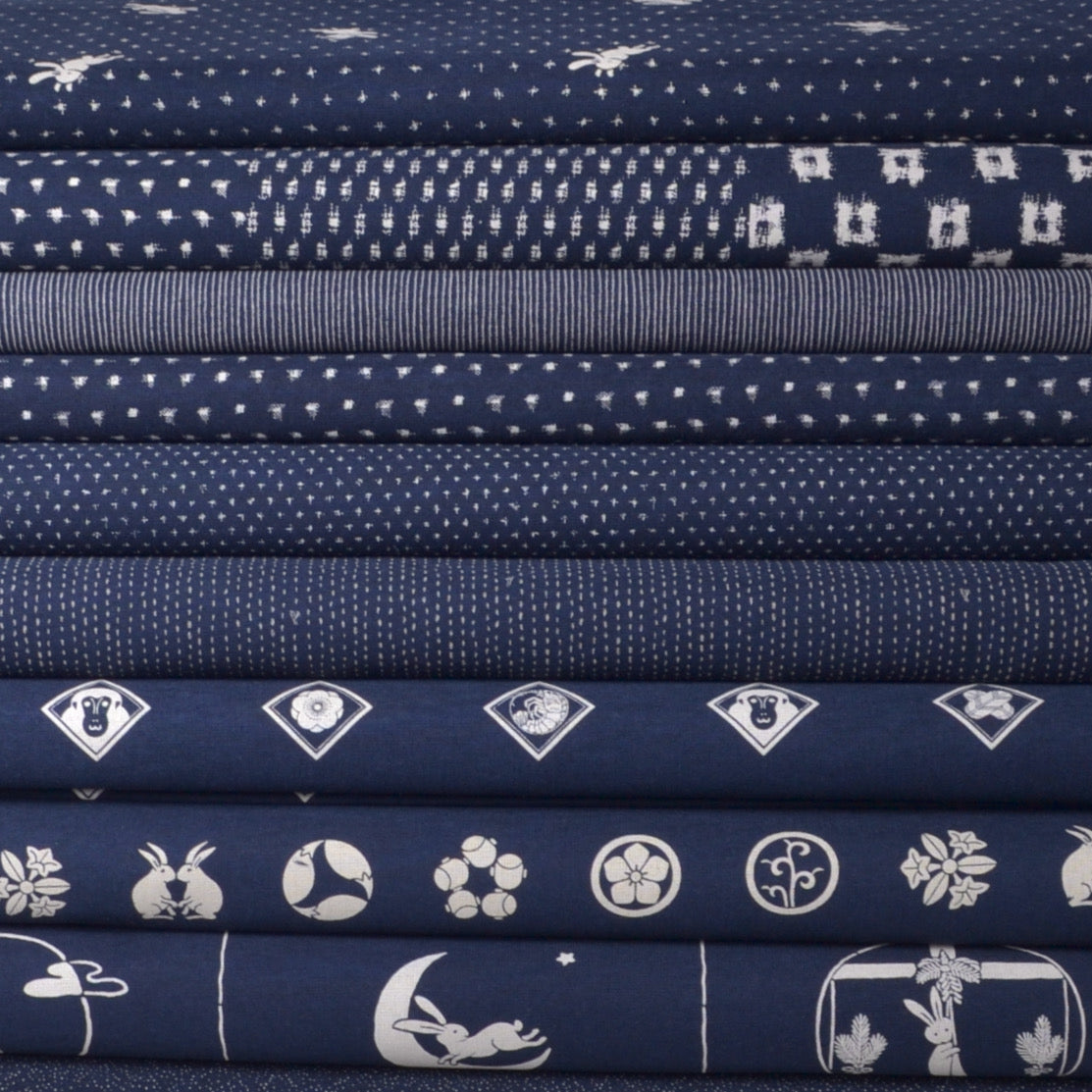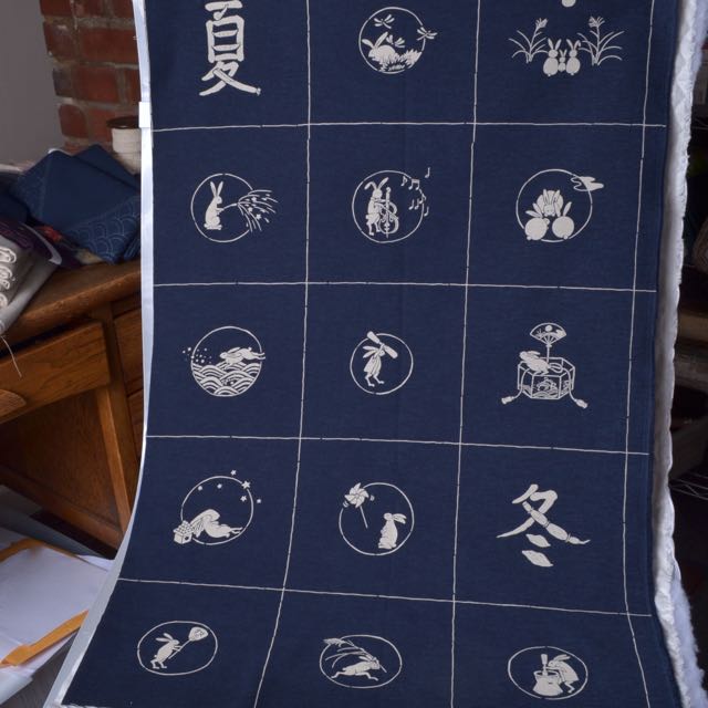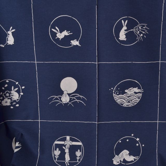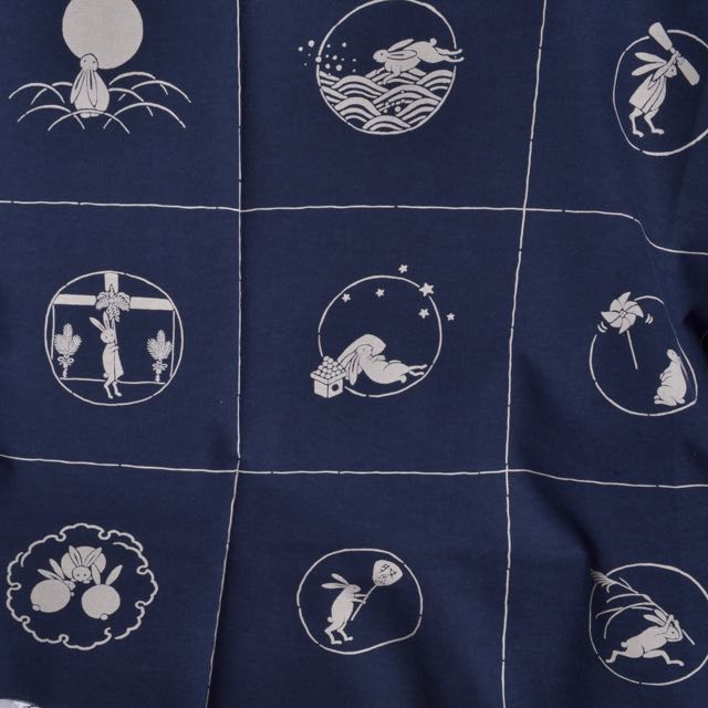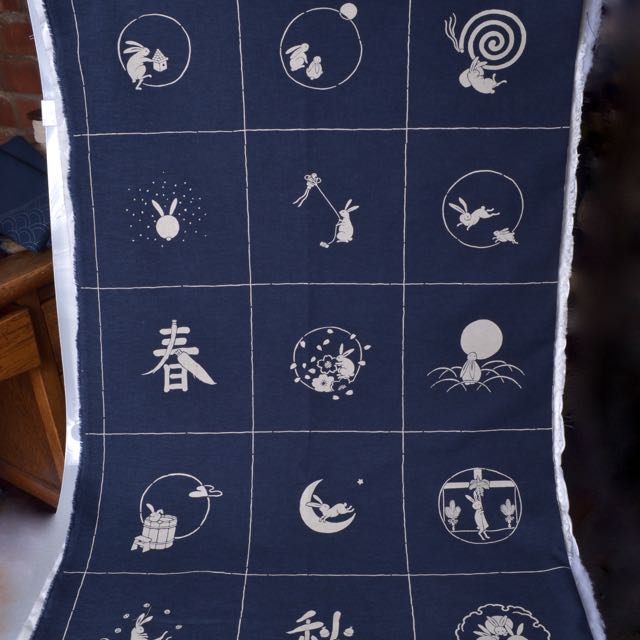 Japanese Wagara Fabric Panel, Bunnies from Olympus Takumi Series. This artisan fabric panel is printed with 9 Kimono designs. Manufactured by Olympus manufacturing in Japan, this high quality cotton fabric is both colourfast and machine washable. Olympus has taken care that it's colour and texture resemble early artisan wagara fabrics.
