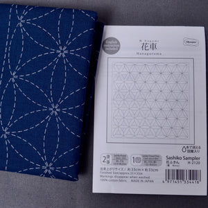 This traditional Japanese Sashiko design, Hana-guruma, is printed with wash out markings. You can simply thread your needle, enjoy the stitching, then rinse away the markings. English instructions are included.