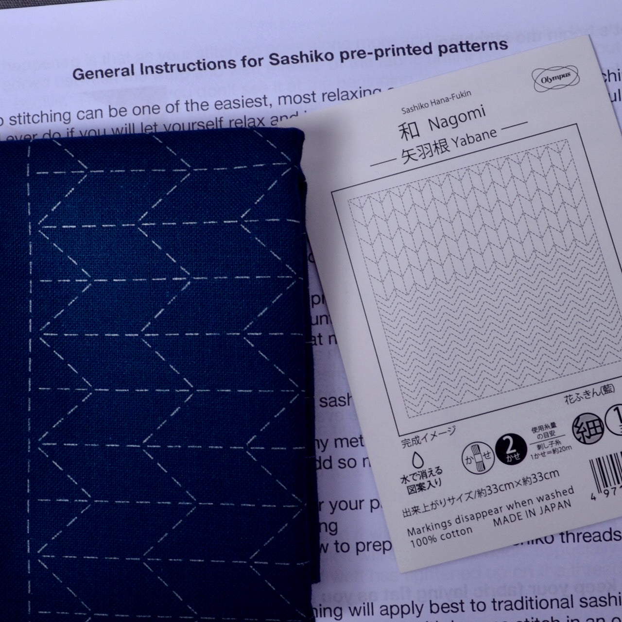 This traditional Japanese Sashiko design, Yabane, is printed with wash out markings. You can simply thread your needle, enjoy the stitching, then rinse away the markings. English instructions are included.