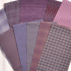 Dyed Yarn Cotton Fabric, 10 Pieces 5" X 21", Assorted Purples