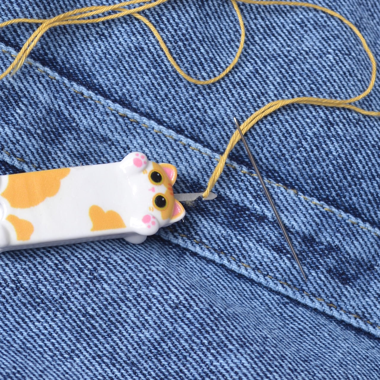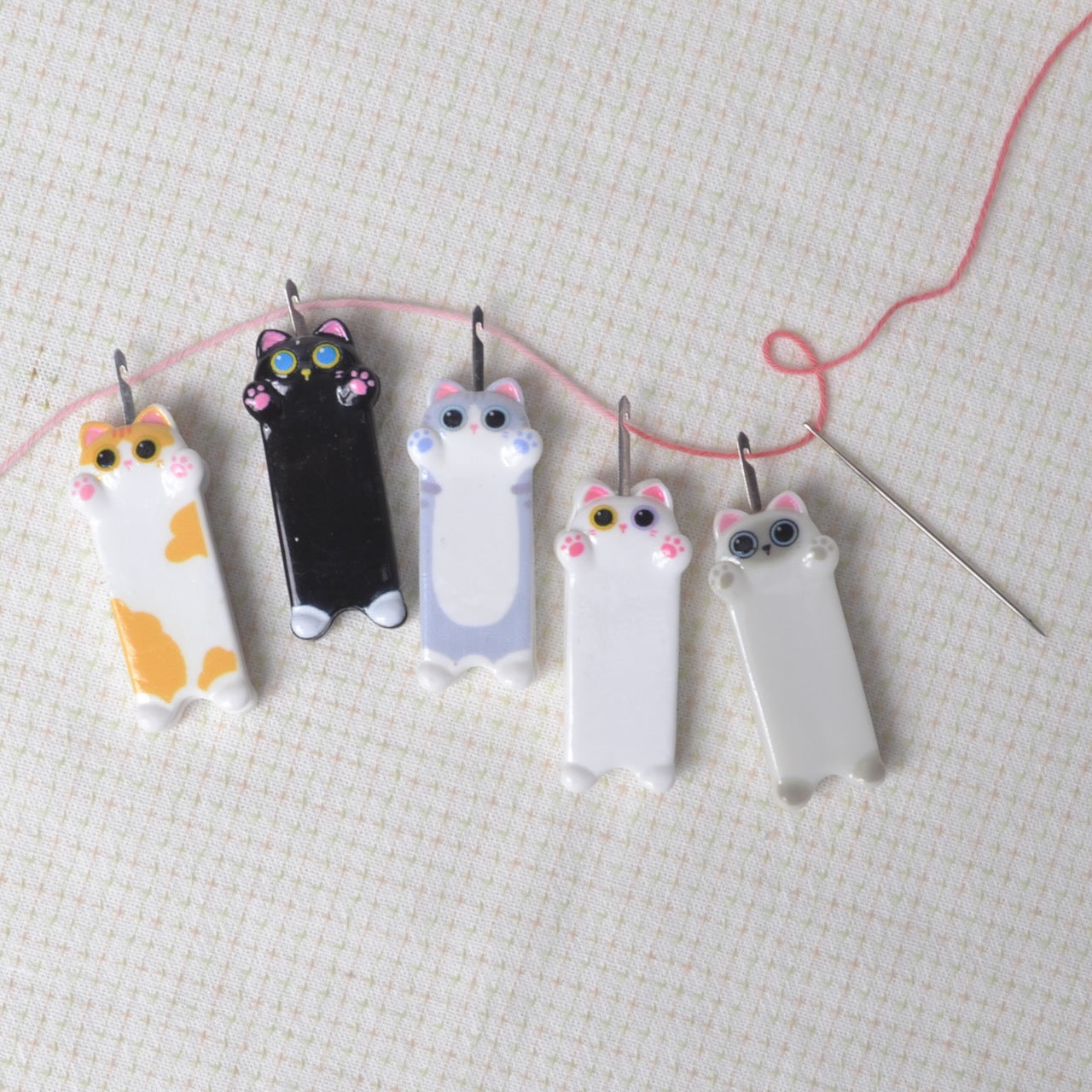 Cute kitten needle threaders. This needle threader is larger than most making it easier to use. The threader is about 4.5cm long and 8mm inch thick which comfortable space to rest your thumb to steady the threader (about 2" X 1/4")