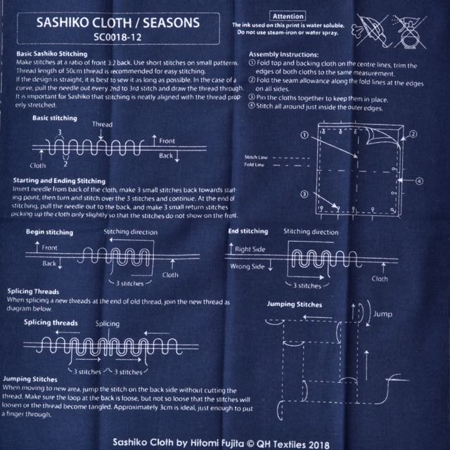 Bracken Fern design by Hitomi Fujita is hand printed in Japan on 100% cotton cloth. The design will wash away completely after you have done the stitching... please don't get it damp before that! :-D