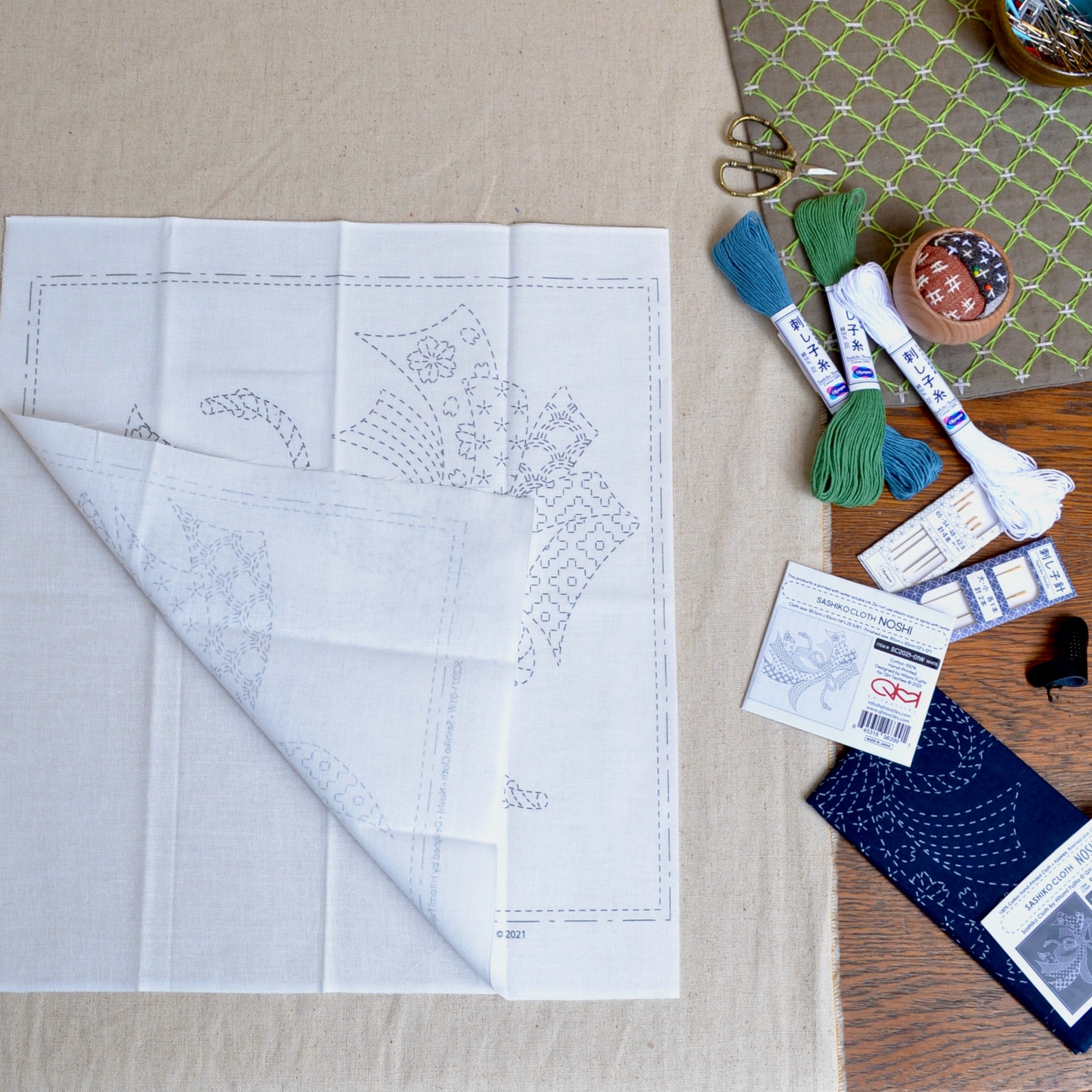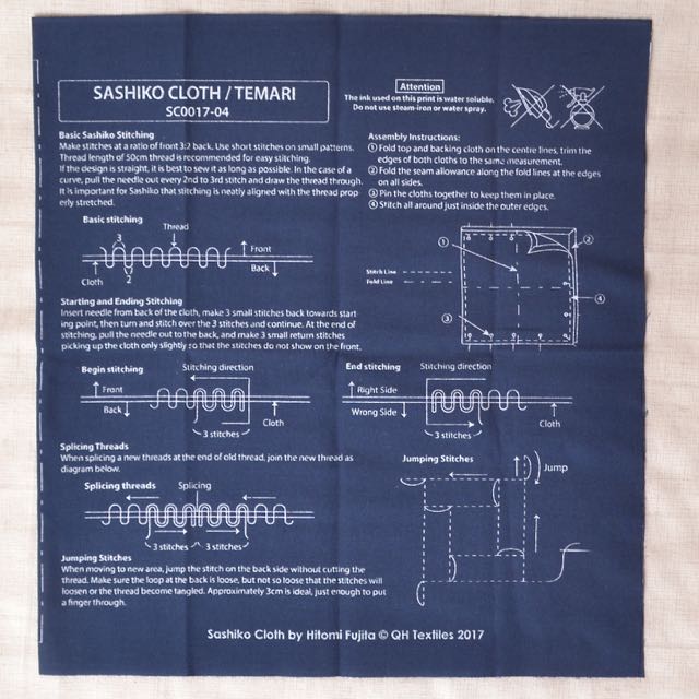 Sashiko Noshi design by Hitomi Fujita is hand printed in Japan on 100% cotton cloth. The design will wash away completely after you have done the stitching... please don't get it damp before that! :-D
