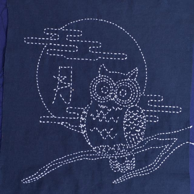 Sashiko Owl design by Hitomi Fujita is hand printed in Japan on 100% cotton cloth. The design will wash away completely after you have done the stitching... please don't get it damp before that! :-D