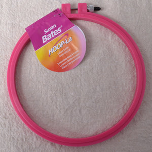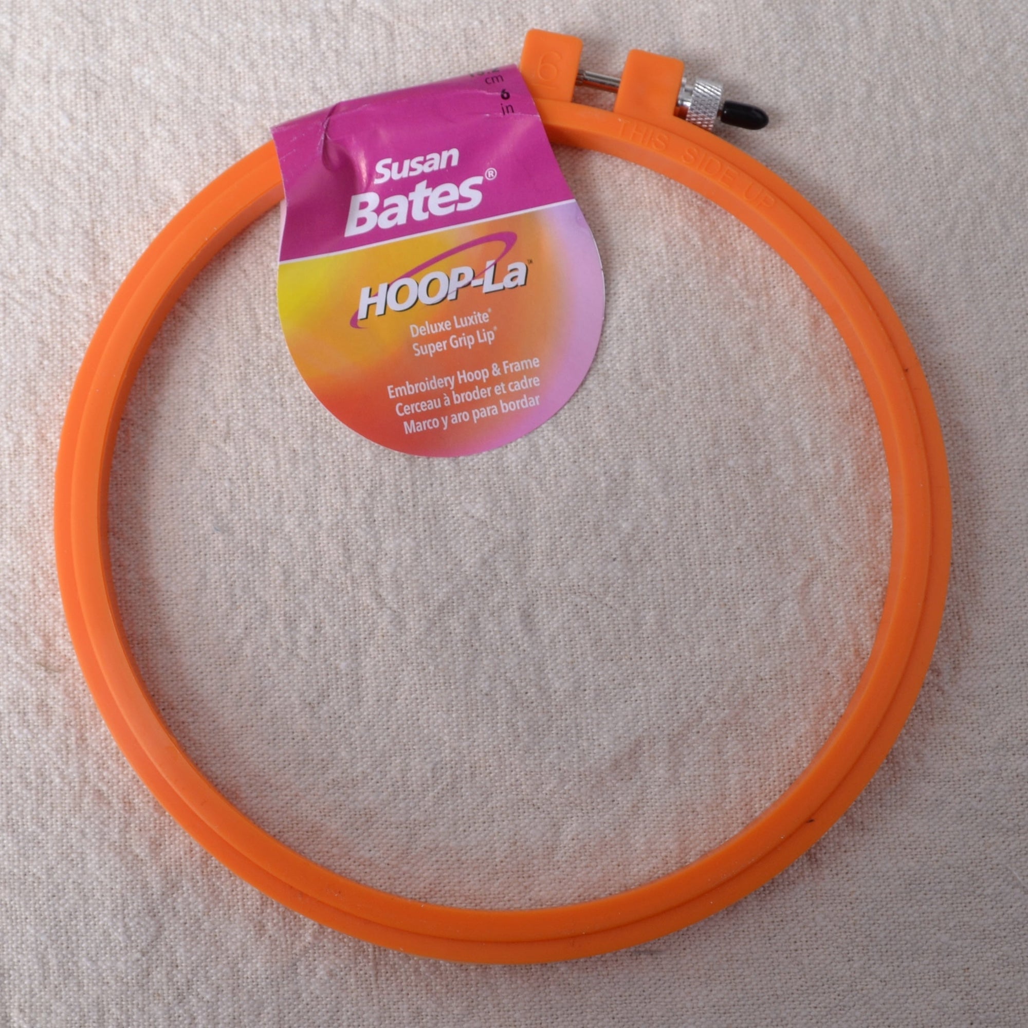 Susan Bates hoop-la embroidery hoops have an exclusive 'super-grip-lip'. This is designed to maintain consistent tension without distorting or snagging your fabric or threads.