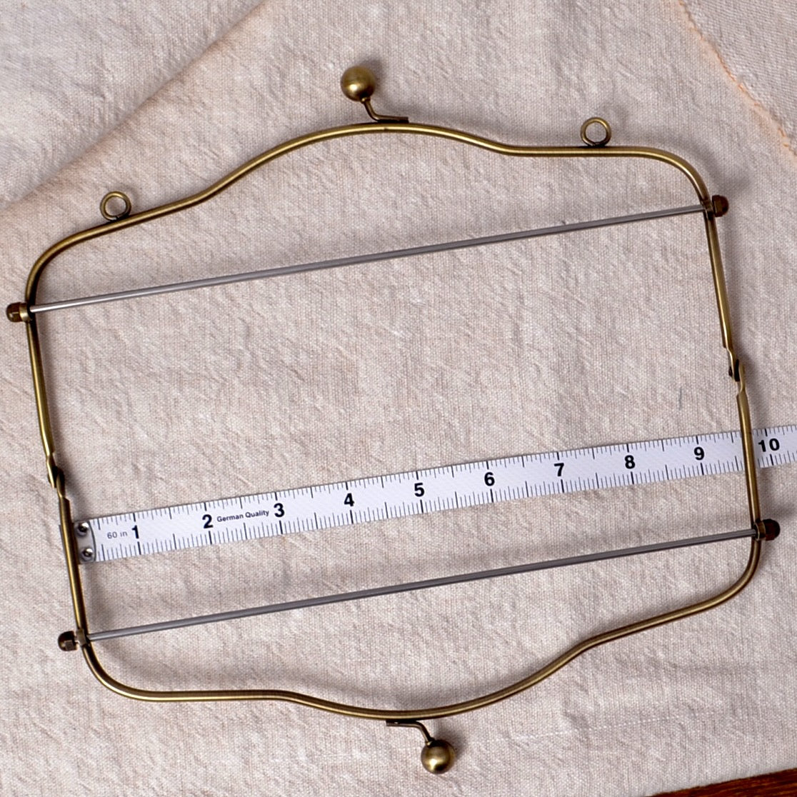 CLEARANCE.   This is a very fun and functional bag. The metal frame is attached with rods that slide through casings and then are fixed there with little screw on ends. This means you can make more than one of the fabric bag and change them to suit you mood :-) (Denim, velvet, prints, the choices are many!)