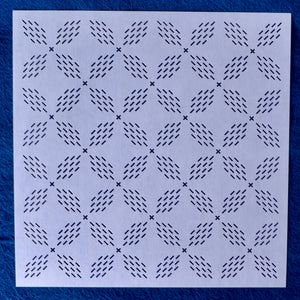Sashiko tools and notions for stitching and quilting sashiko projects. Needles, thimbles, transfer tools, pre-quilted batting, stencils, marking pencils, big stitch wheel marker, thread clips, scissors, more