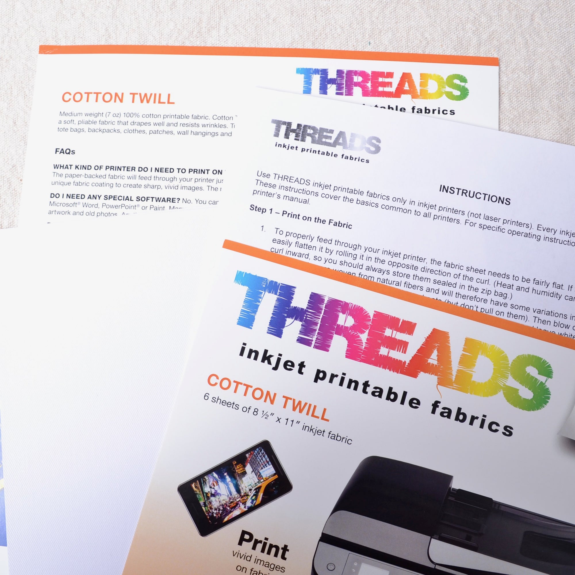 Medium-weight (7 oz) cotton twill printable fabric. Print on fabric using your own inkjet printer! Create sharp prints with extraordinarily vivid colours and smooth skin tones. Easily peel off the paper backing and sew your personalised fabric to make purses, pillows, wall hangings, tote bags, craft projects, jackets, pants.