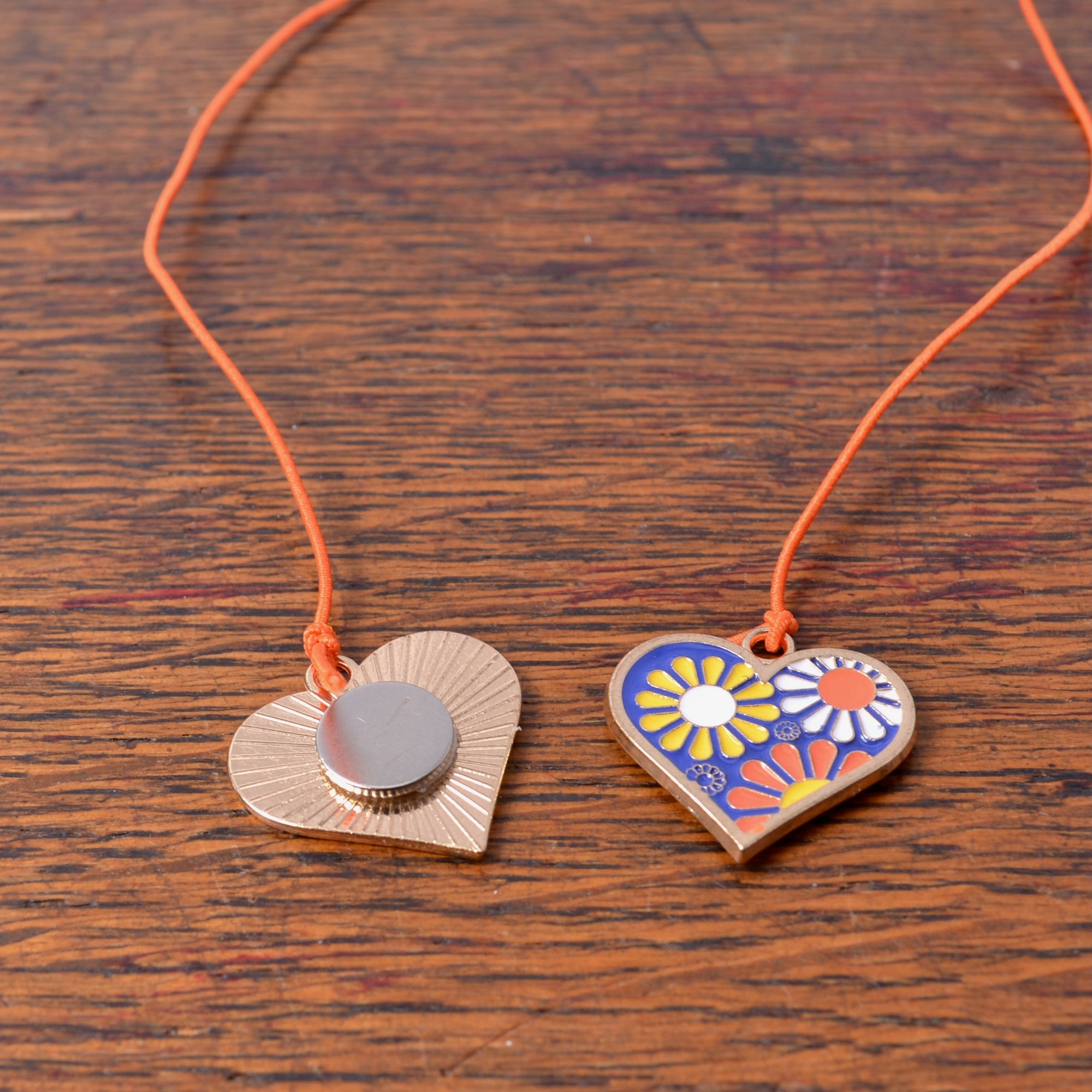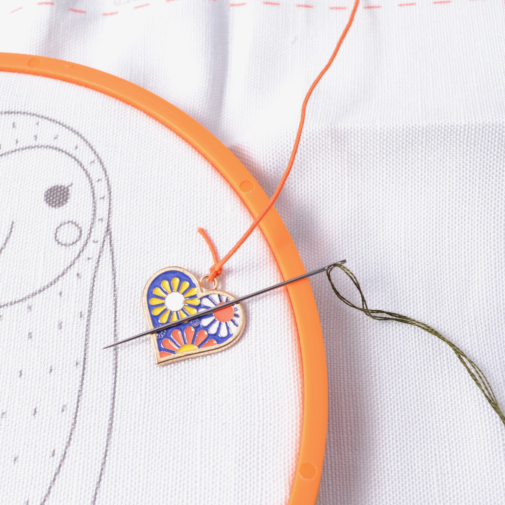 Another clever way to manage your stitching needles! This needle minder comes in two matching pieces connected by a slightly stretchy cord. Both sides have the enamel daisy image and are backed with a magnet.