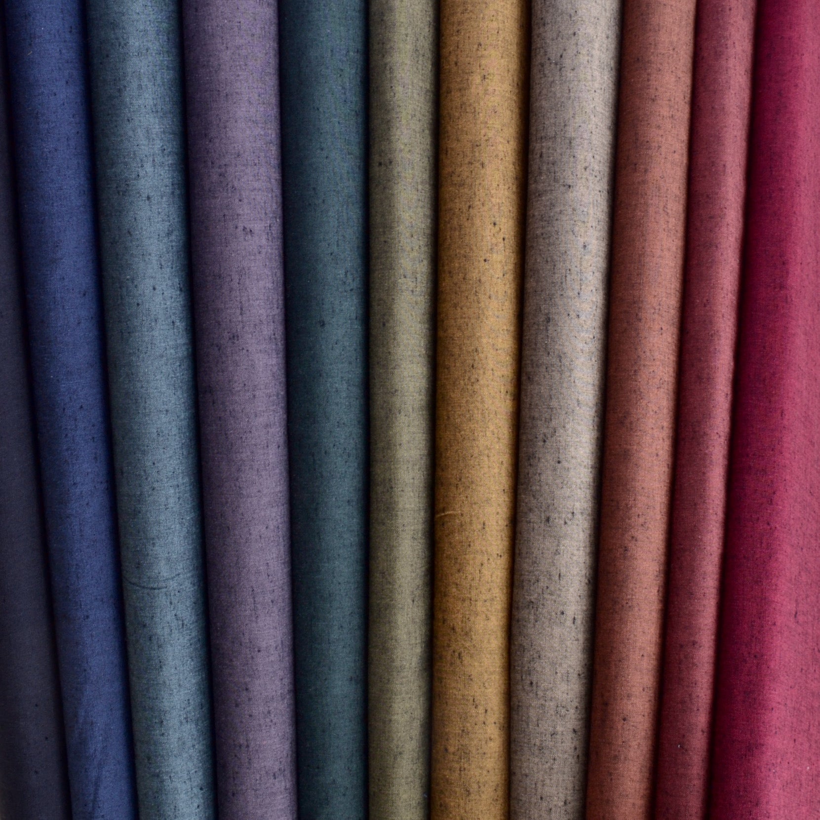 This Tsumugi fabric is made by Olympus in Japan. It is a fine quality cotton version of the very expensive silk tsumugi fabric of the past. The fabric is woven on a black warp with some soft slubby-ness. This creates the distinctive appearance of tsumugi cloth, and combined with the earthy tones of the weft thread colours, makes it similar in appearance to the original silk Japanese tsumugi cloth.