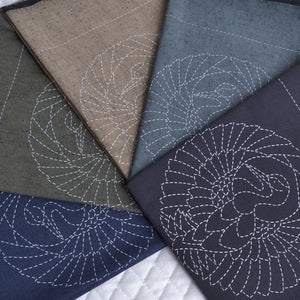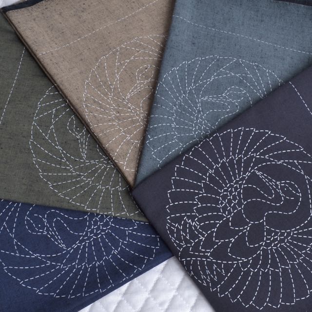 Ready to stitch preprinted sashiko patterns on tsumugi fabrics are available in several colours, in panels or smaller projects, and I have the matching plain tsumugi fabric also available.