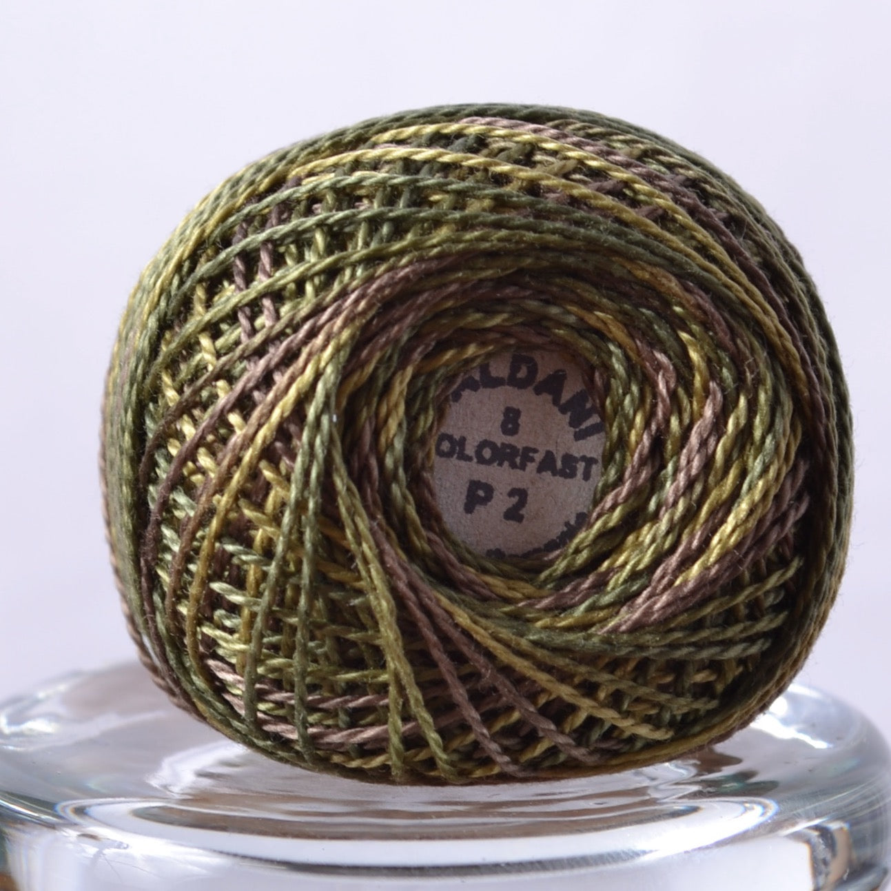 Valdani Variegated Hand Dyed Perle Cotton Thread, Olive Green