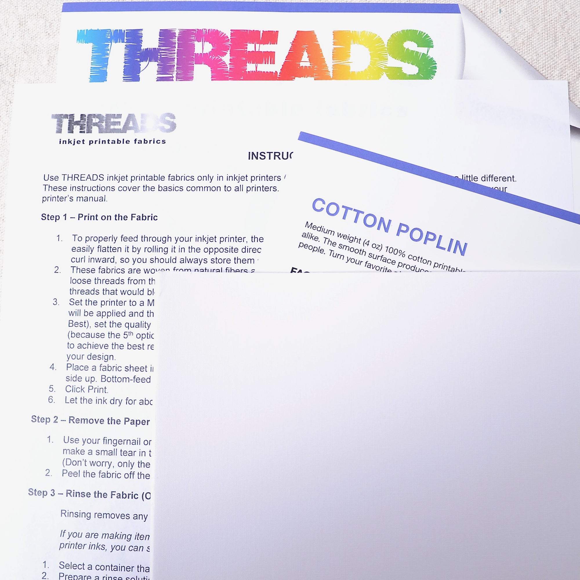 Threads inkjet printable fabrics Quilt-weight (4 oz) cotton is one of the best selling printable fabrics available. Create custom quilting fabrics using your own inkjet printer. The smooth surface produces sharp prints with fine details, vivid colours and smooth skin tones for stunningly realistic images of people. Easily peel off the paper backing and sew your personalised fabric to make textile art, memory stitch books, quilts, pillows, purses, clothes.