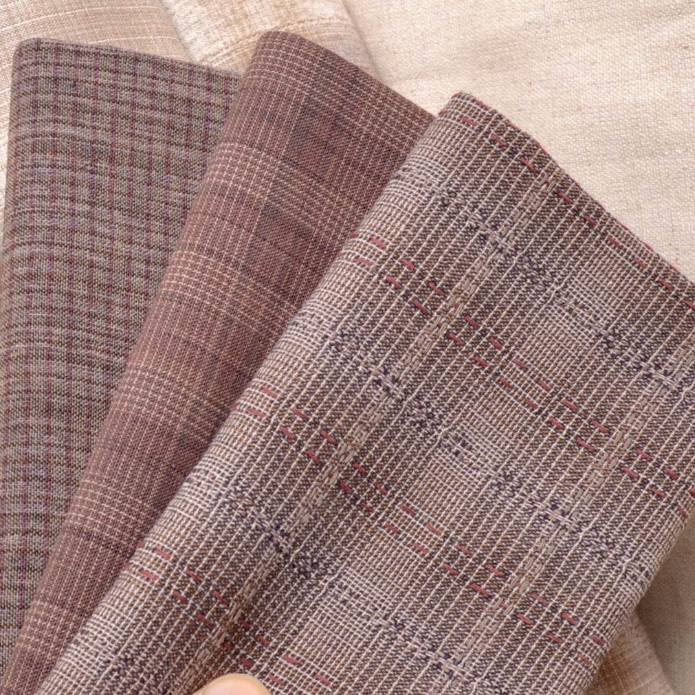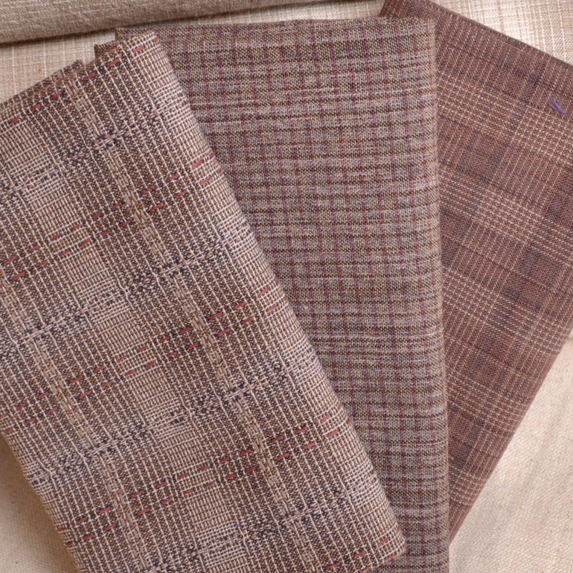 Bundle of 3 fat quarters of dyed yarn 100% cotton fabric suitable for piecework, quilting, applique, clothing, and other sewing projects. Especially suitable for Yoko Saito patterns, boro stitching, Japanese quilting, patterns calling for homespun fabrics and hand stitching backgrounds.