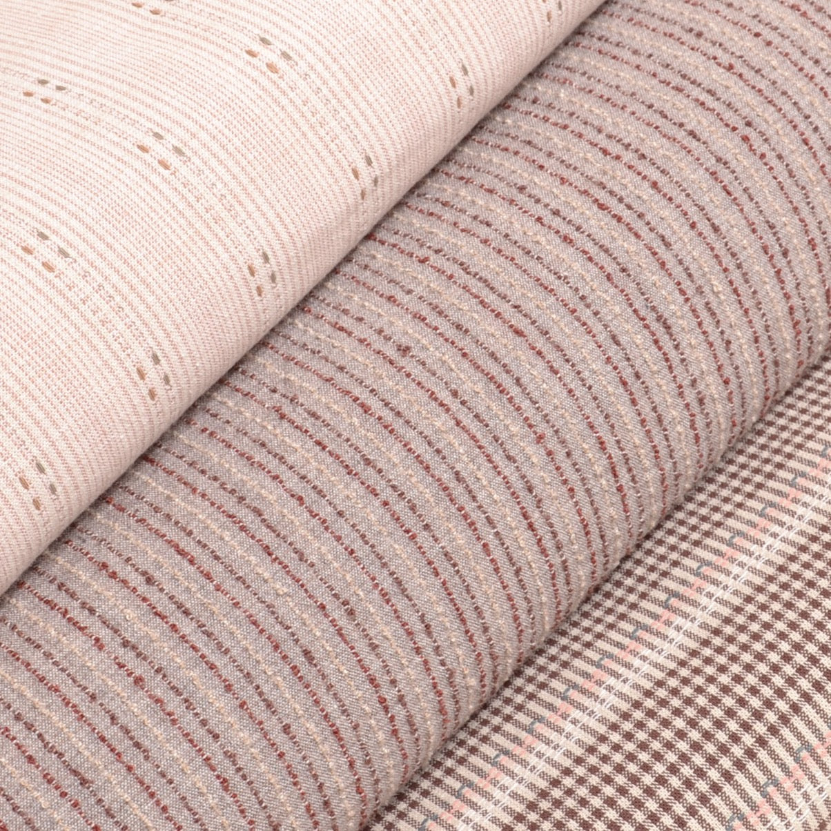 Dyed yarn fabrics get their distinctive appearance and feel from how they are woven. The yarns (threads) are dyed first, and then the cloth is woven. Often a few different weights or textures of yarn (thread) are woven into the cloth to create a more textured fabric. Weaving with dyed threads means the colour is embedded in the fabric and will not fade off the surface with washing. In most cases it also means both sides of the fabric can be used as the 'right' side, although each side will usually look slightly different.