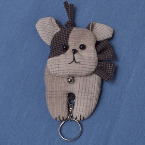 This cute puppy is really a cover for your keys. You put them on the key ring that is tied to a cord that runs through the puppy. When you pull the cord from the top it pulls your keys up out of sight inside and the cord becomes a wrist strap. When you want to use your keys you pull them back out from the bottom.
