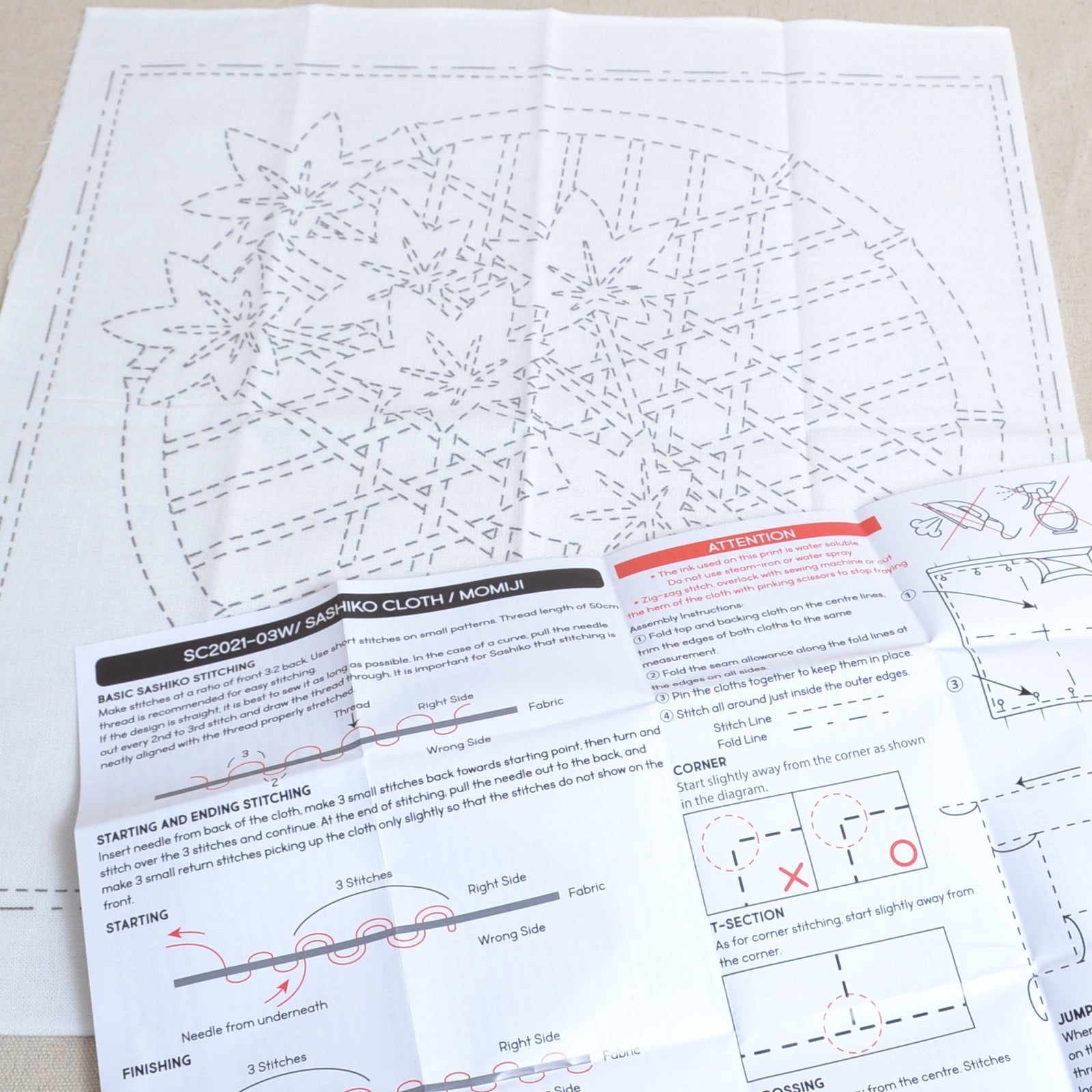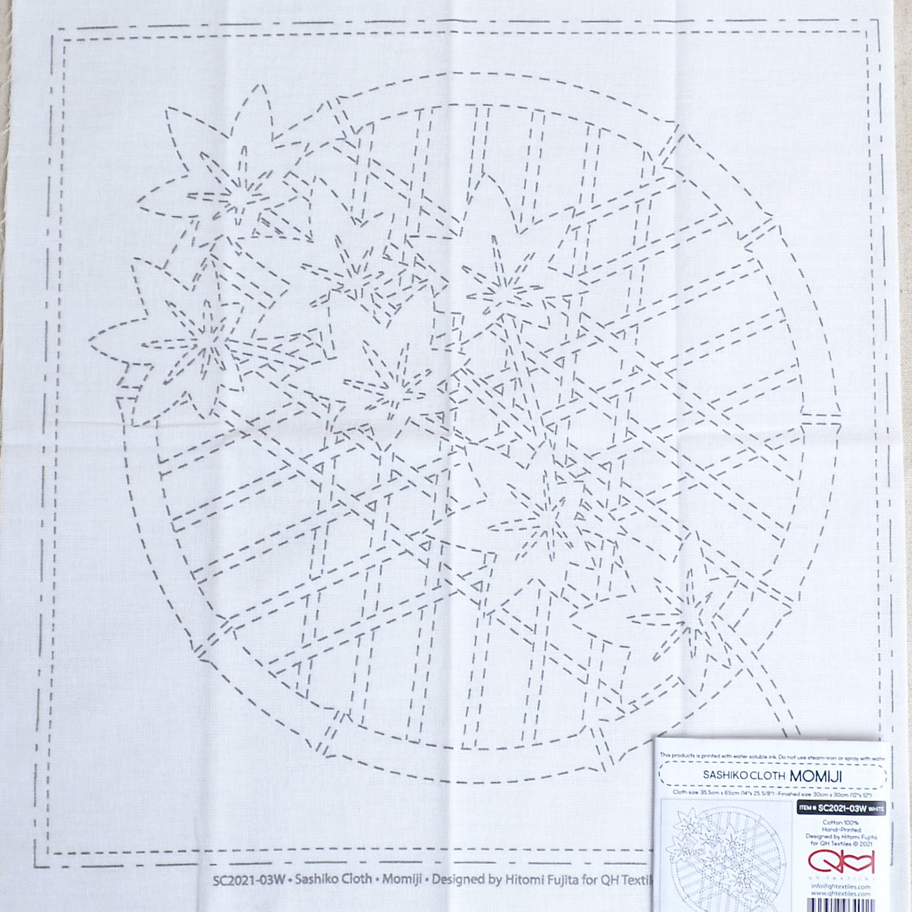 Sashiko Momiji design by Hitomi Fujita is hand printed in Japan on 100% cotton cloth. The design will wash away completely after you have done the stitching... please don't get it damp before that! :-D