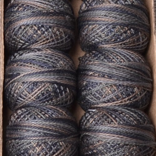 Valdani Variegated Hand Dyed Perle Cotton Thread, Aged Black