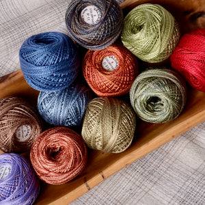 Hand dyed Valdani Perle Cotton threads are loved by so many of us for the depth of colour and softer texture of the thread. These long staple hand-dyed Egyptian cotton threads have a soft sheen and gentle colour transitions.
