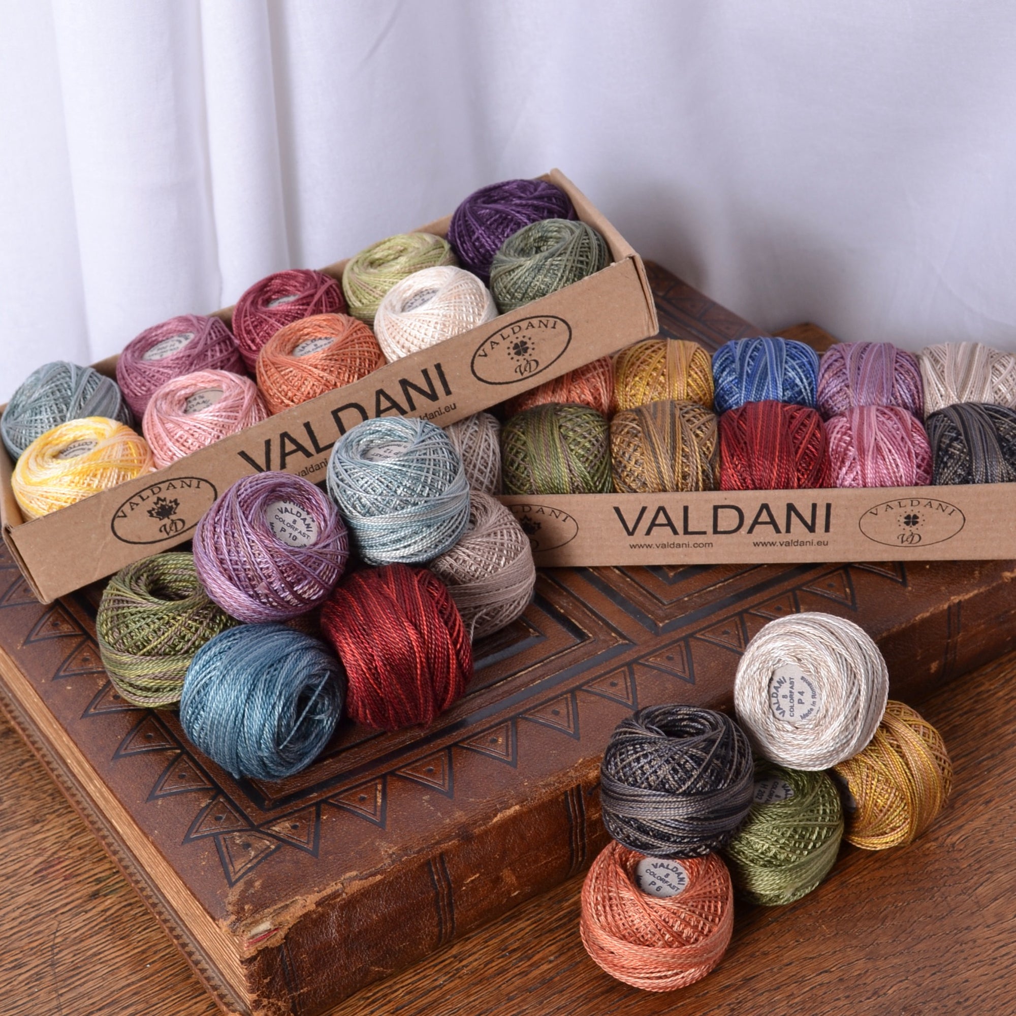 Valdani threads may have a bit of variation between dye lots because they are hand dyed. Valdani threads are less tightly wrapped into balls than other perle cottons. This can make them a bit messier but is worth it because it protects the cotton fibres from being stretched and crushed.