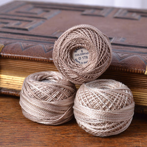 Valdani threads may have a bit of variation between dye lots because they are hand dyed. Valdani threads are less tightly wrapped into balls than other perle cottons. This can make them a bit messier but is worth it because it protects the cotton fibres from being stretched and crushed.